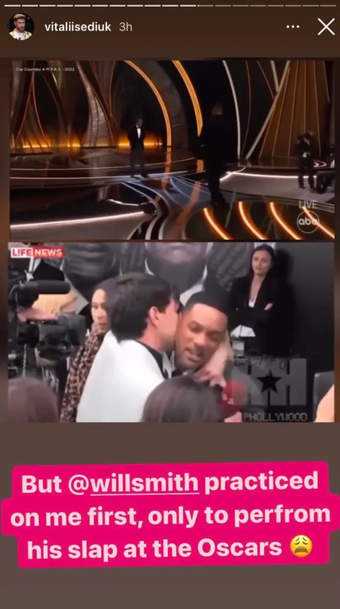 He wrote: “But @willsmith practiced on me first, only to perform his slap at the Oscars.”