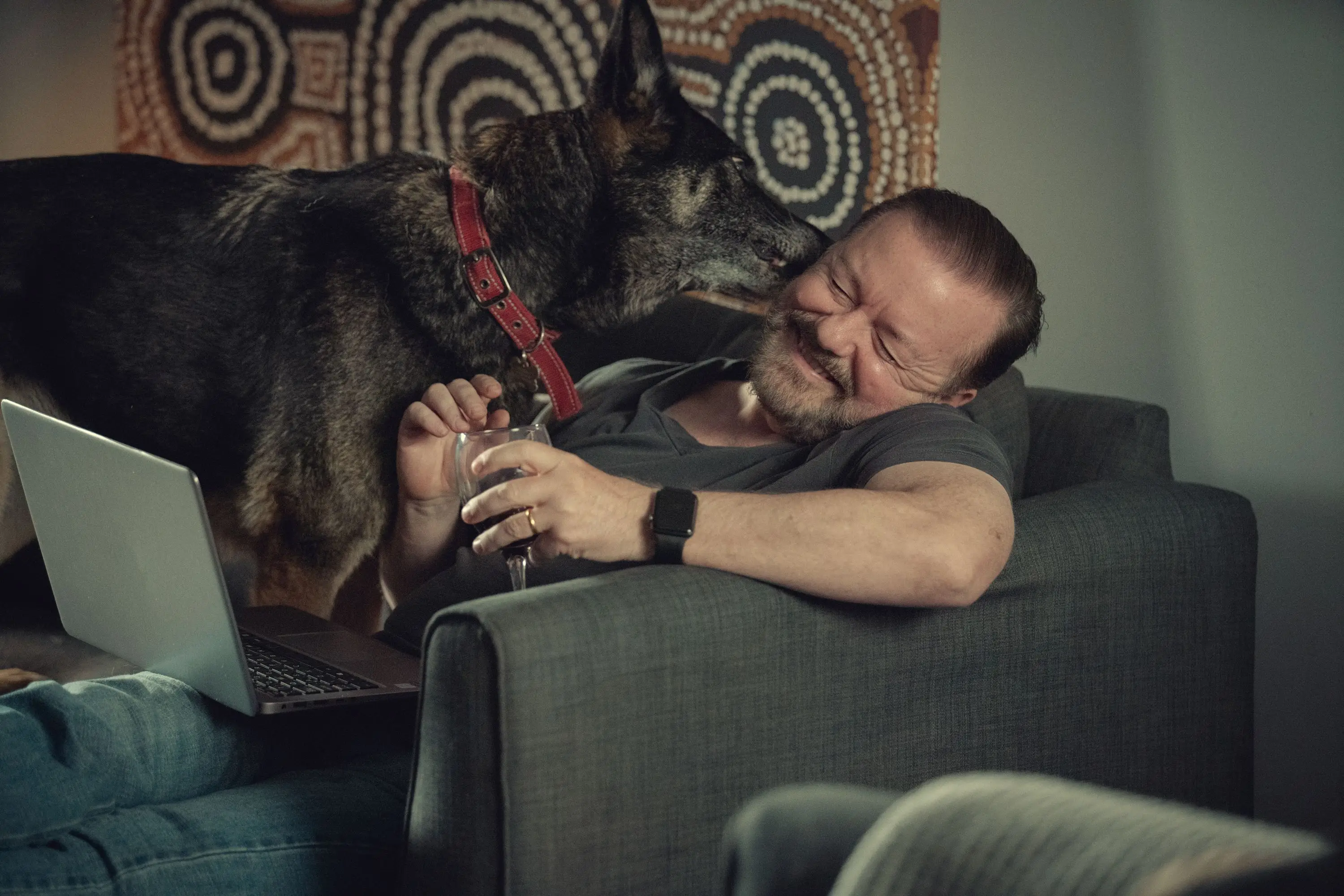 Ricky Gervais has revealed he would want to die before his partner as he believes he’d be ‘terrible’ in the face of grief – a comment that prompted an unexpected reaction from his on-screen pet from After Life, who had joined him for his interview on The One Show last night. Take a look below:
