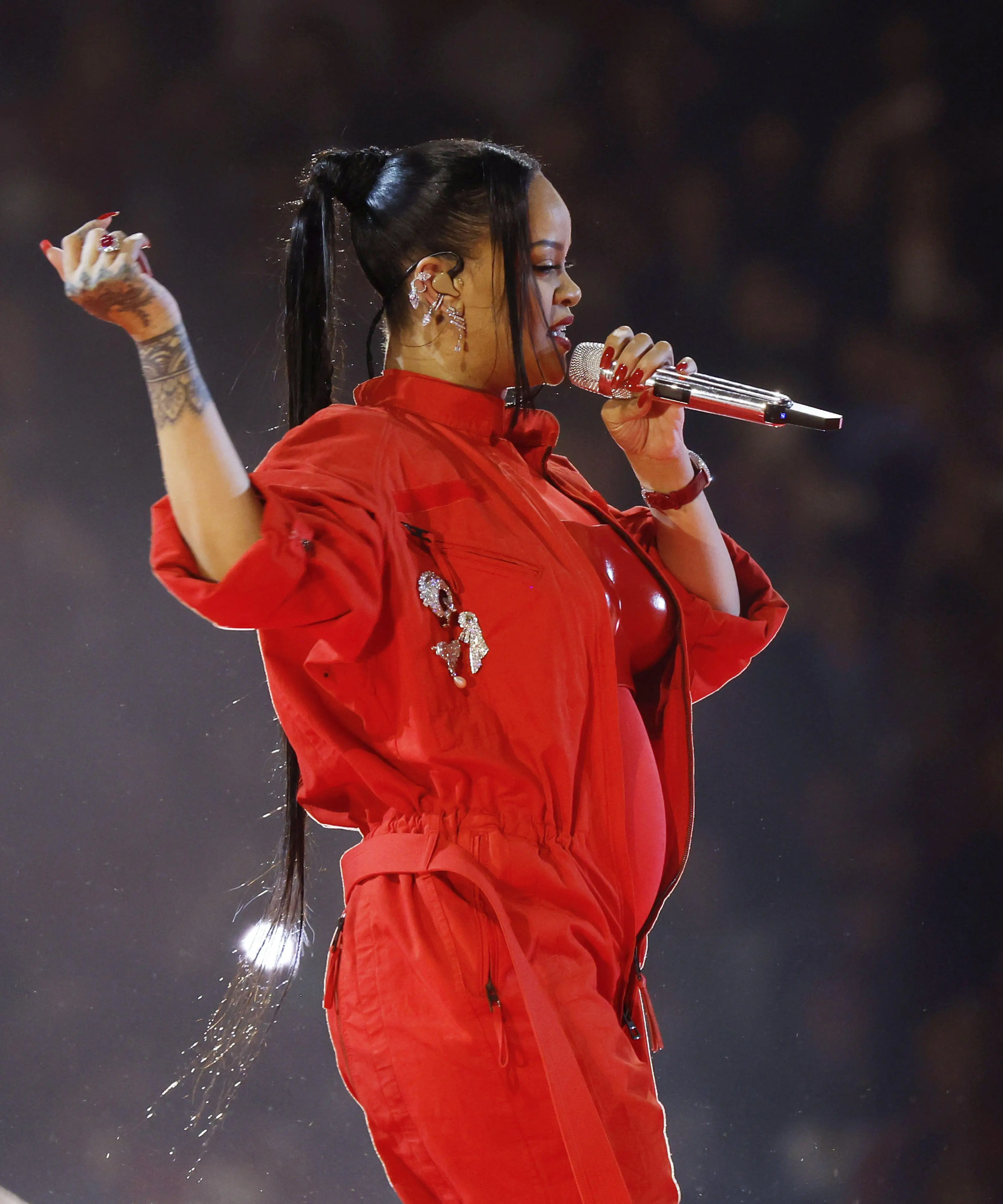 If her Super Bowl Halftime Show wasn't enough, the musician used the 13-minute set to debut her baby bump, making it official that she’s pregnant for a second time with partner A$AP Rocky.