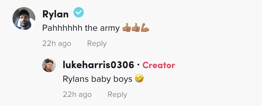 And Rylan wasn’t done with the group of lads yet, either - shortly after posting the clip to TikTok he commented: “Pahhhhhh the army.” prompting Luke to respond: "Rylan's baby boys."
