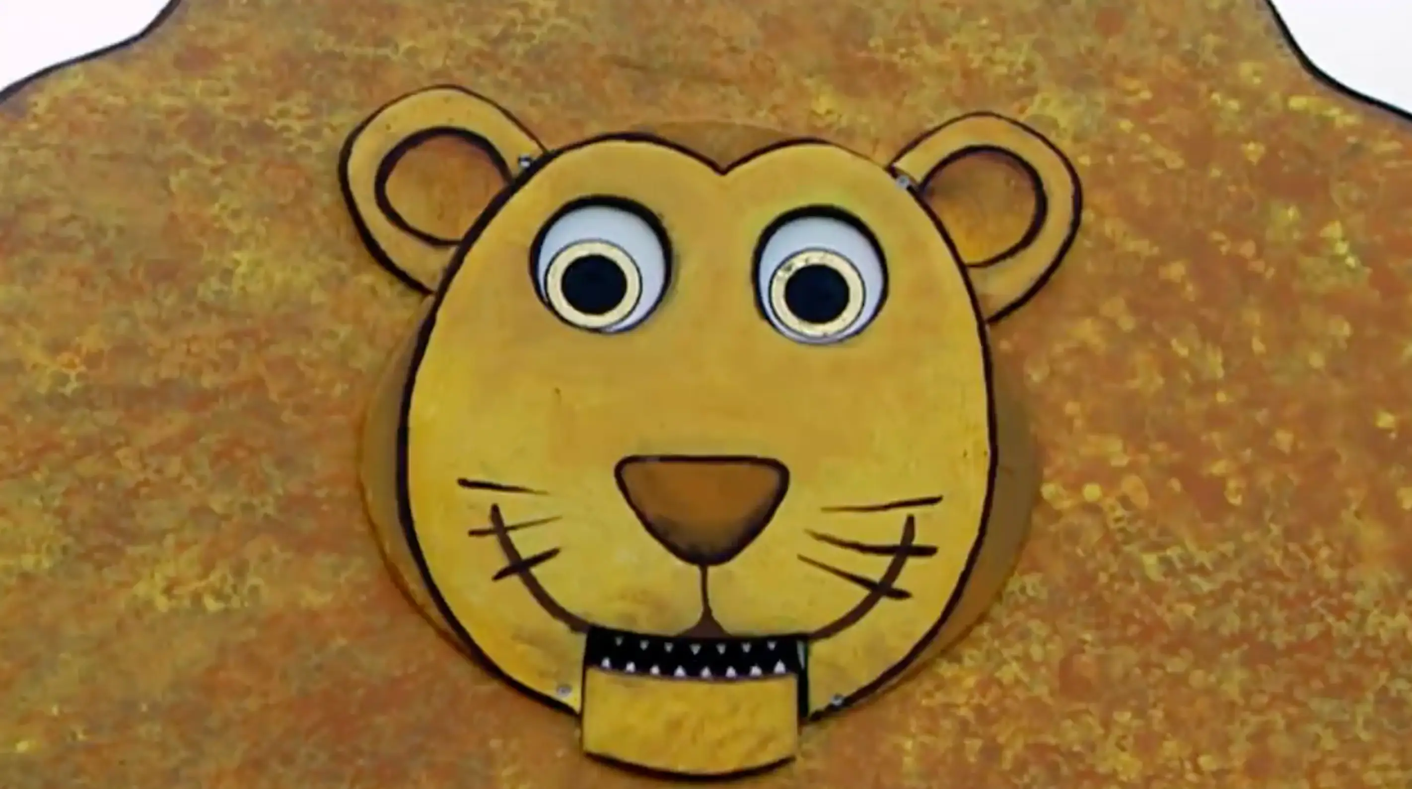The clip in questions starts with a cartoon lion - with unsettlingly darting eyes - being wheeled over the rolling meadows whilst roaring.