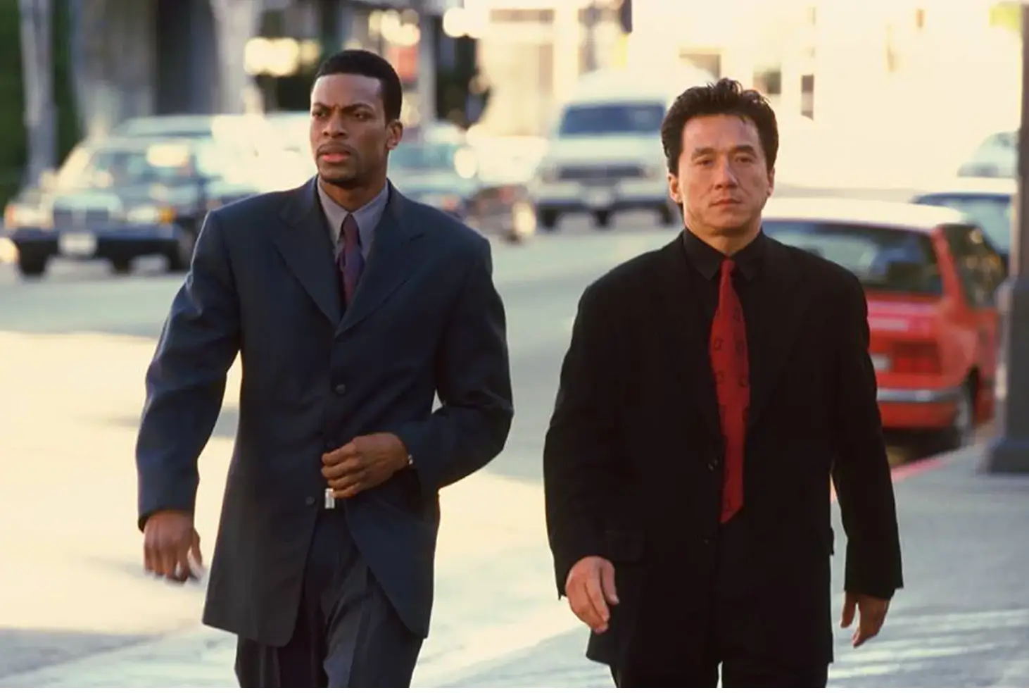 The first film takes place after a Chinese diplomat’s daughter is kidnapped in Los Angeles, and Hong Kong detective inspector Lee (Chan) is phoned in to locate the girl. However, the FBI wants nothing to do with Lee and instead assigns him to work alongside wisecracking detective James Carter (Tucker).