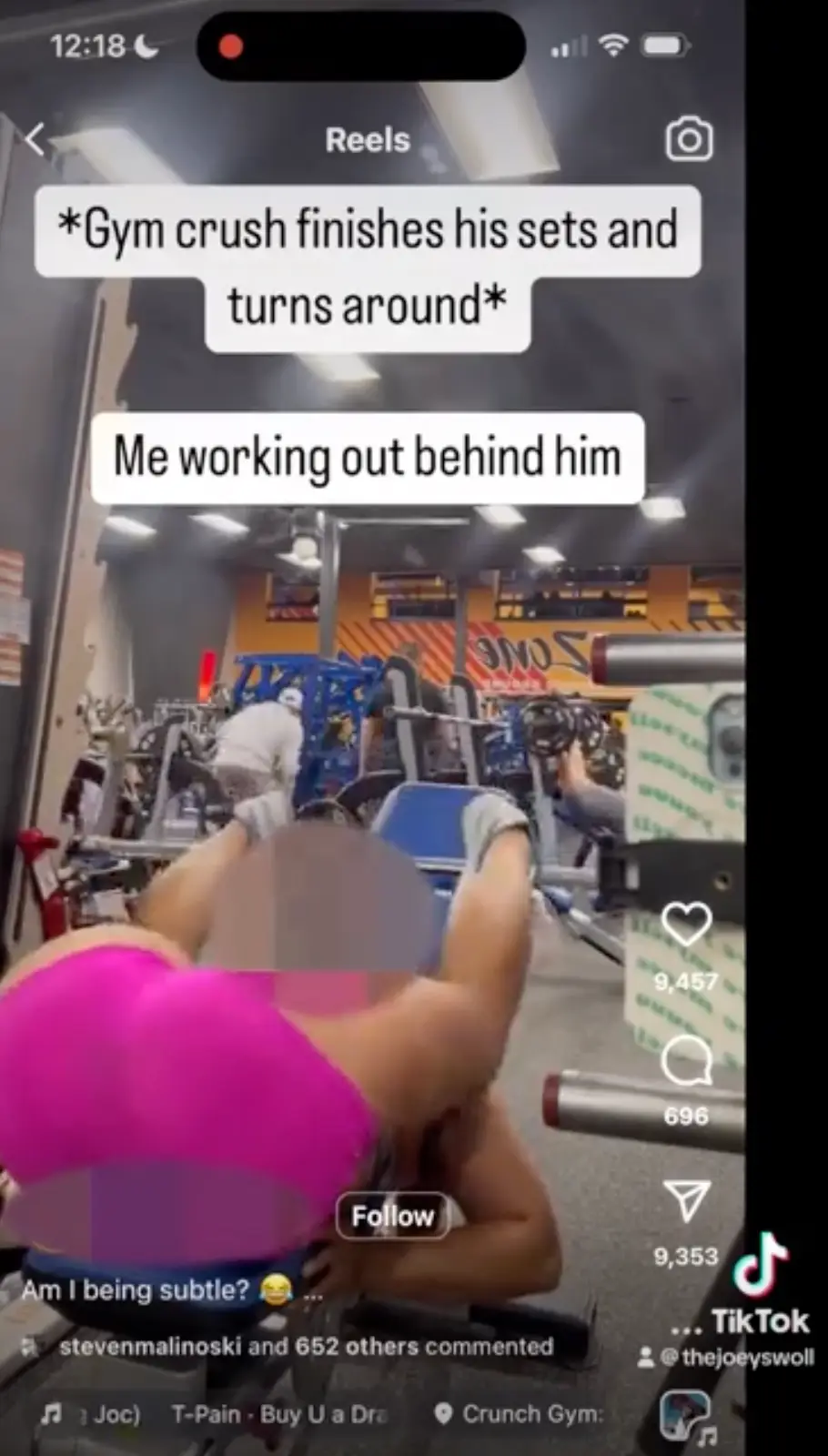 The caption on her video read: "*Gym crush finishes his sets and turns around"... Me working out behind him," alongside her in the sexually suggestive position.