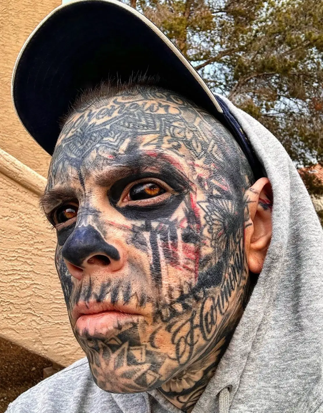 Three years ago, he had the whites of his eyeballs tattooed completely black, leaving just the brown pupils exposed in the $10,000 procedure.