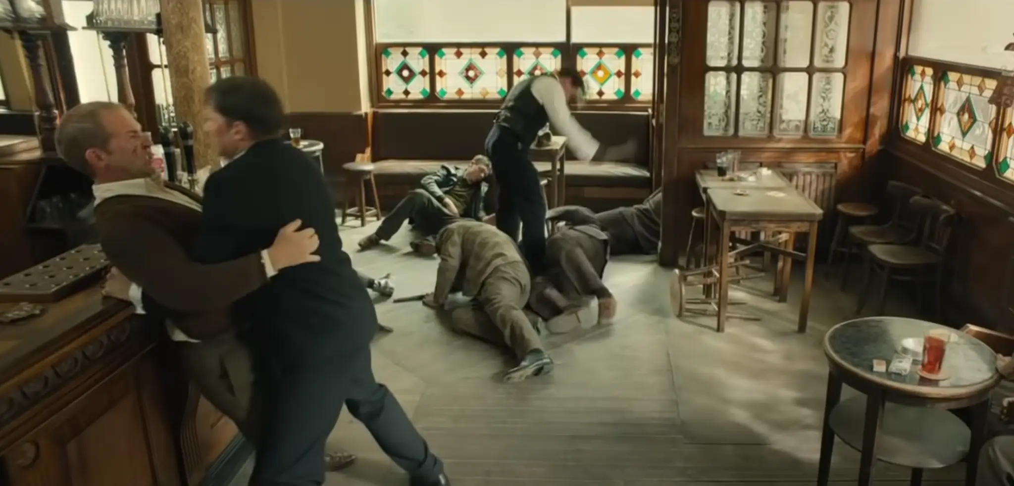 At one point in the film, which follows the rise and fall of the notorious criminals, we see an explosive fight break out between sparring sides at a pub, which quickly descends into a grisly mess.