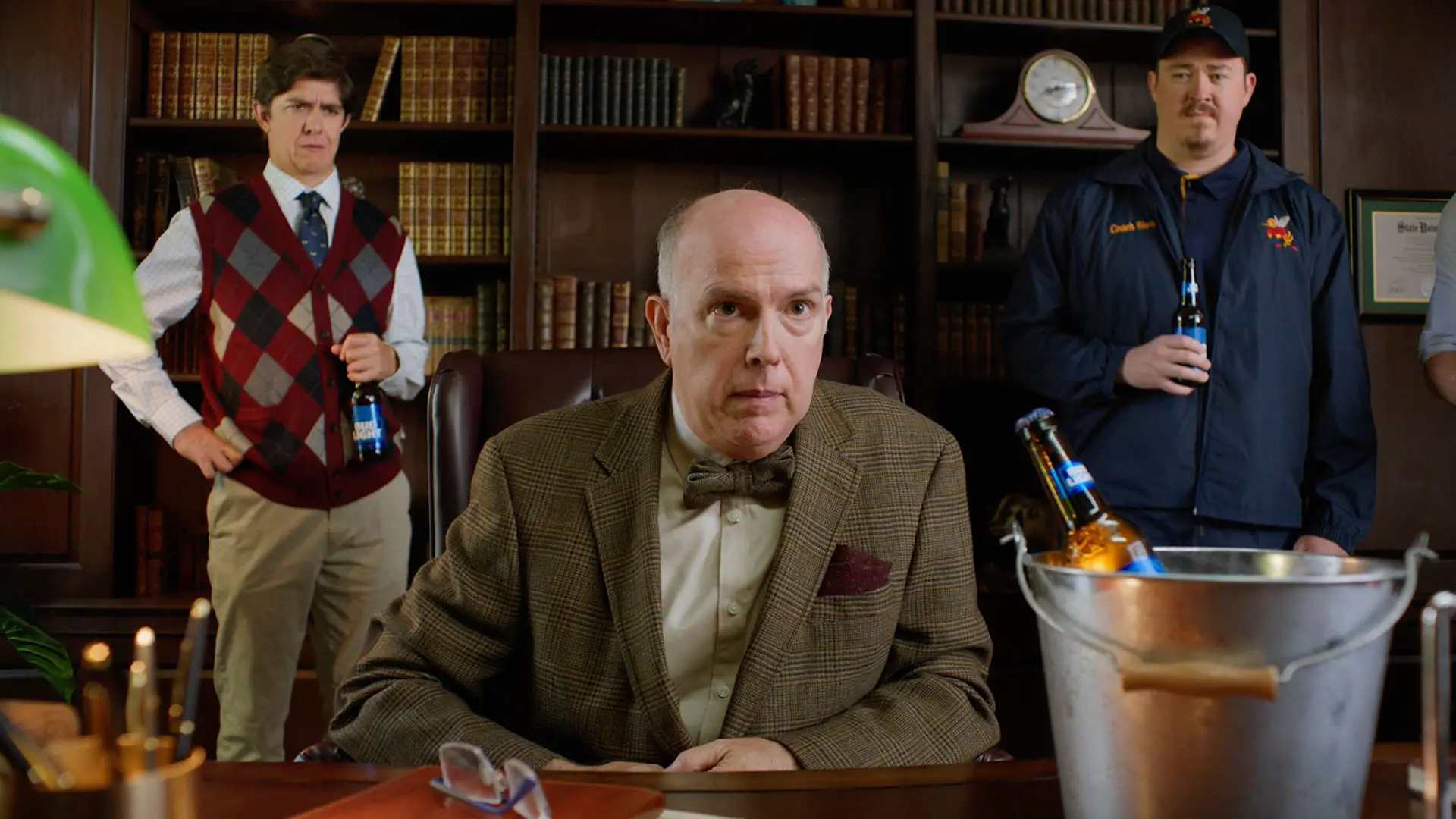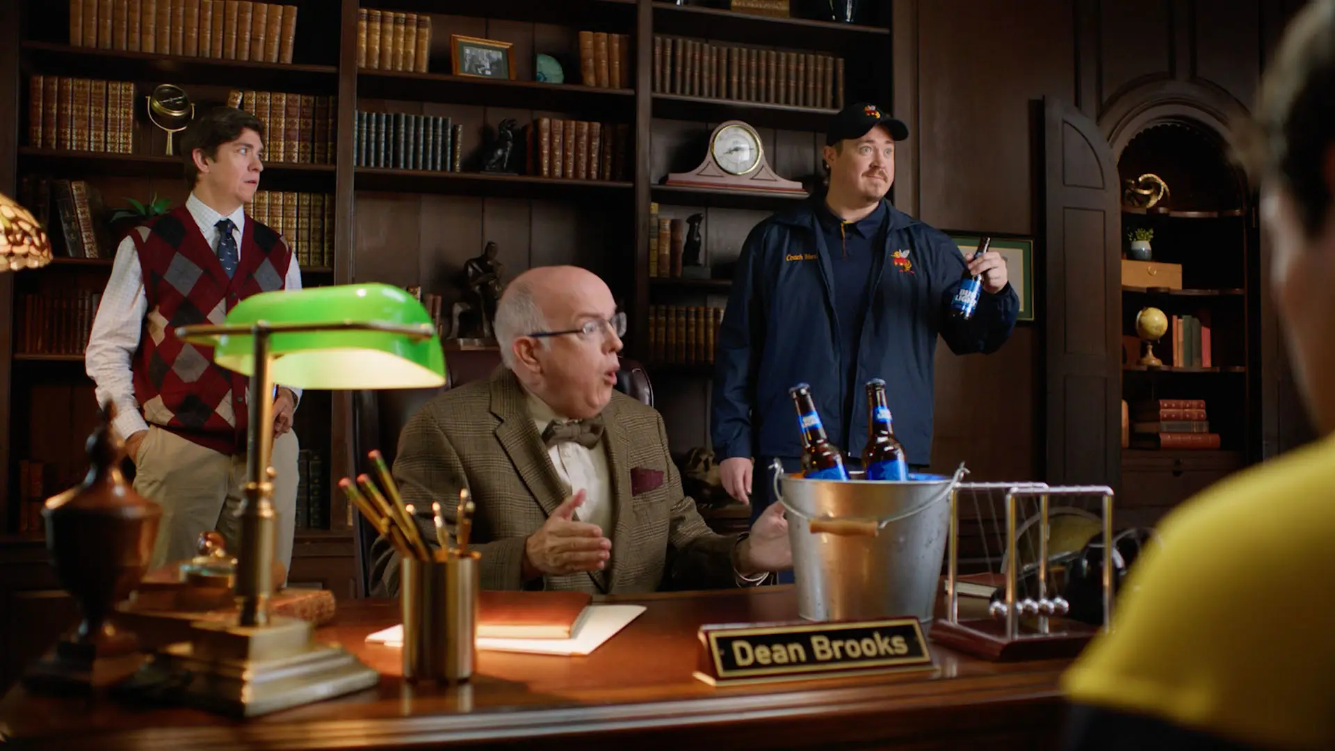 However, the stern-looking Dean presents the master's student with an enticing proposition: come clean and he’ll be given a bucket of ice-cold Bud Lights.