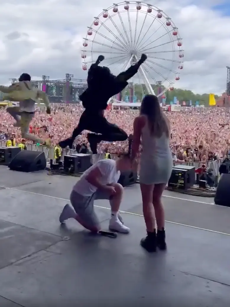 Indy Geraghty was one of hundreds of people who ventured to Manchester's Heaton Park for the second day of the festival on Sunday (12 June), but she got a surprise when her boyfriend Myles Goodfellow took the microphone on stage and popped the question.