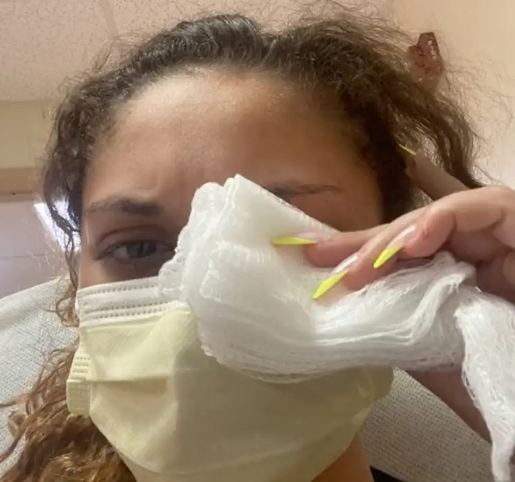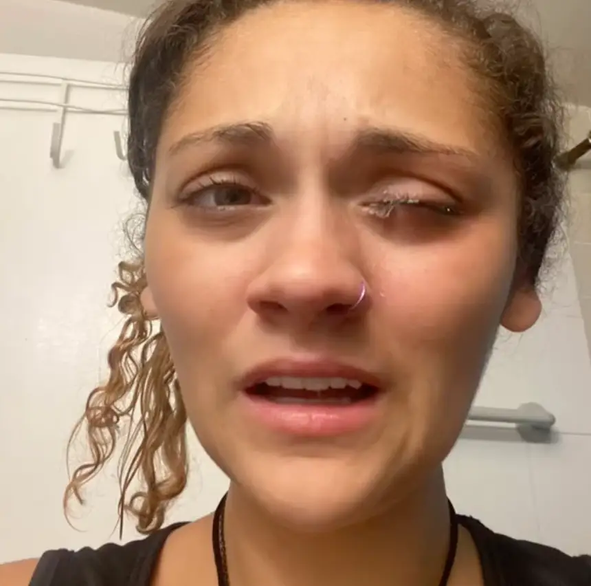 Snaps from the TikTok clip showed her in a hospital gown, in her triage bed, and doctors prying her poor lids back.