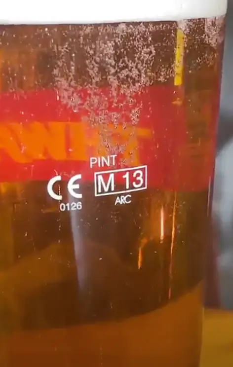 'Pub Man Dan' explained: "If you've ever wondered why your beer doesn't look quite right, you see those bubbles forming on the side of your glass, it's because of that number there... That's the year the glass was made."