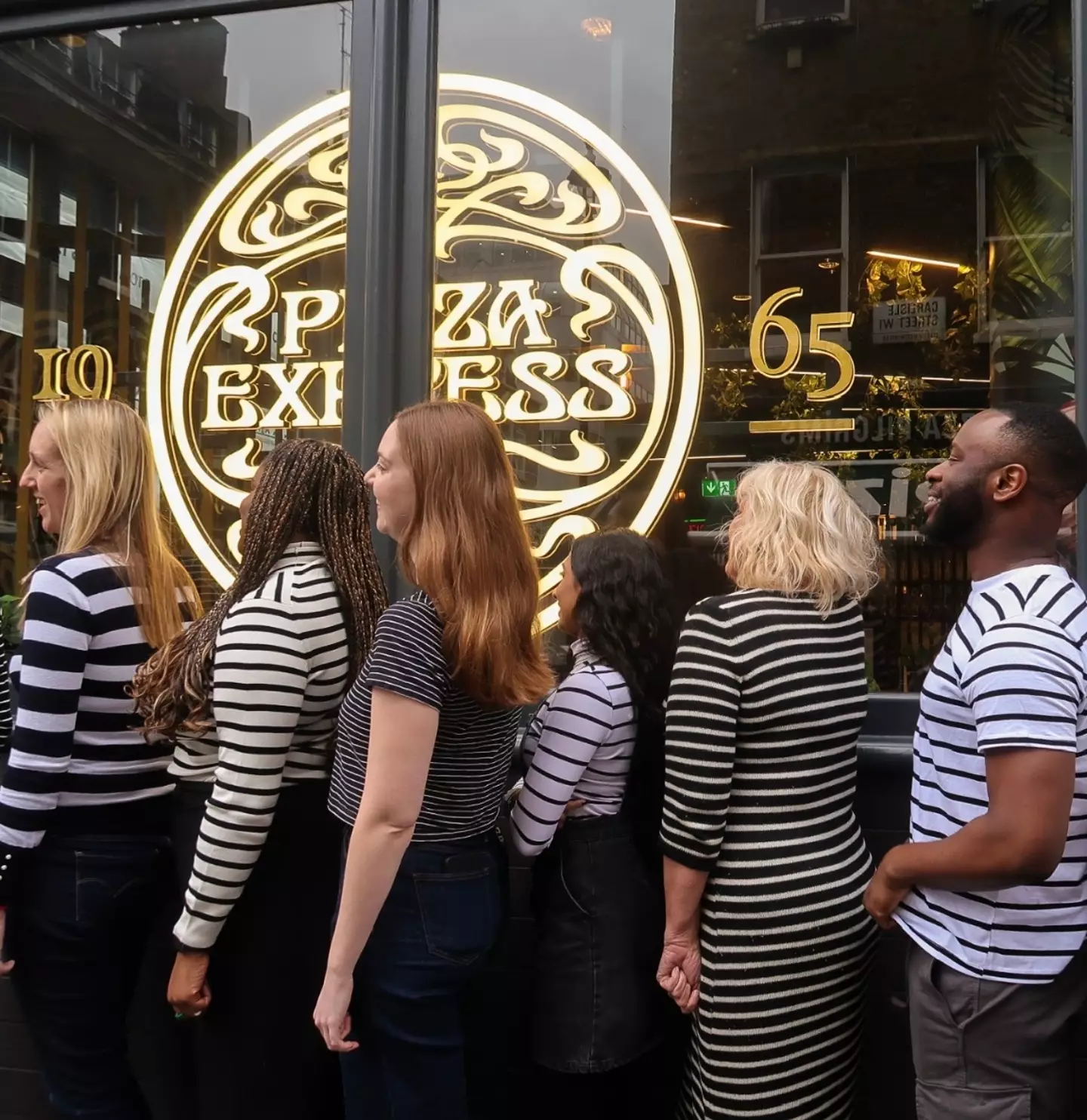 If you see mobs of people in black and white stripes crowded outside of a Pizza Express today, don't be alarmed.
