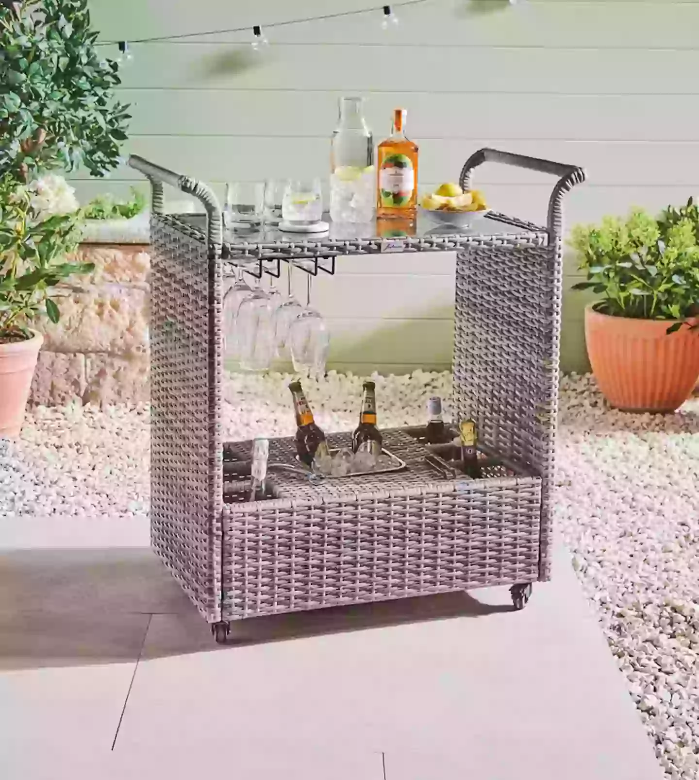 The perfect addition to outdoor entertaining, this rattan-style bar trolley is an excellent investment for anyone looking to enhance their BBQ setup. With a sleek grey wicker finish topped with glass, it comes complete with integrated shelves plus wine glass holders and even bottle coolers to keep your tipple of choice nice and frosty when the sun comes out. Part of Aldi's Specialbuys range, it's set to be one of the supermarket's most sought-after items.