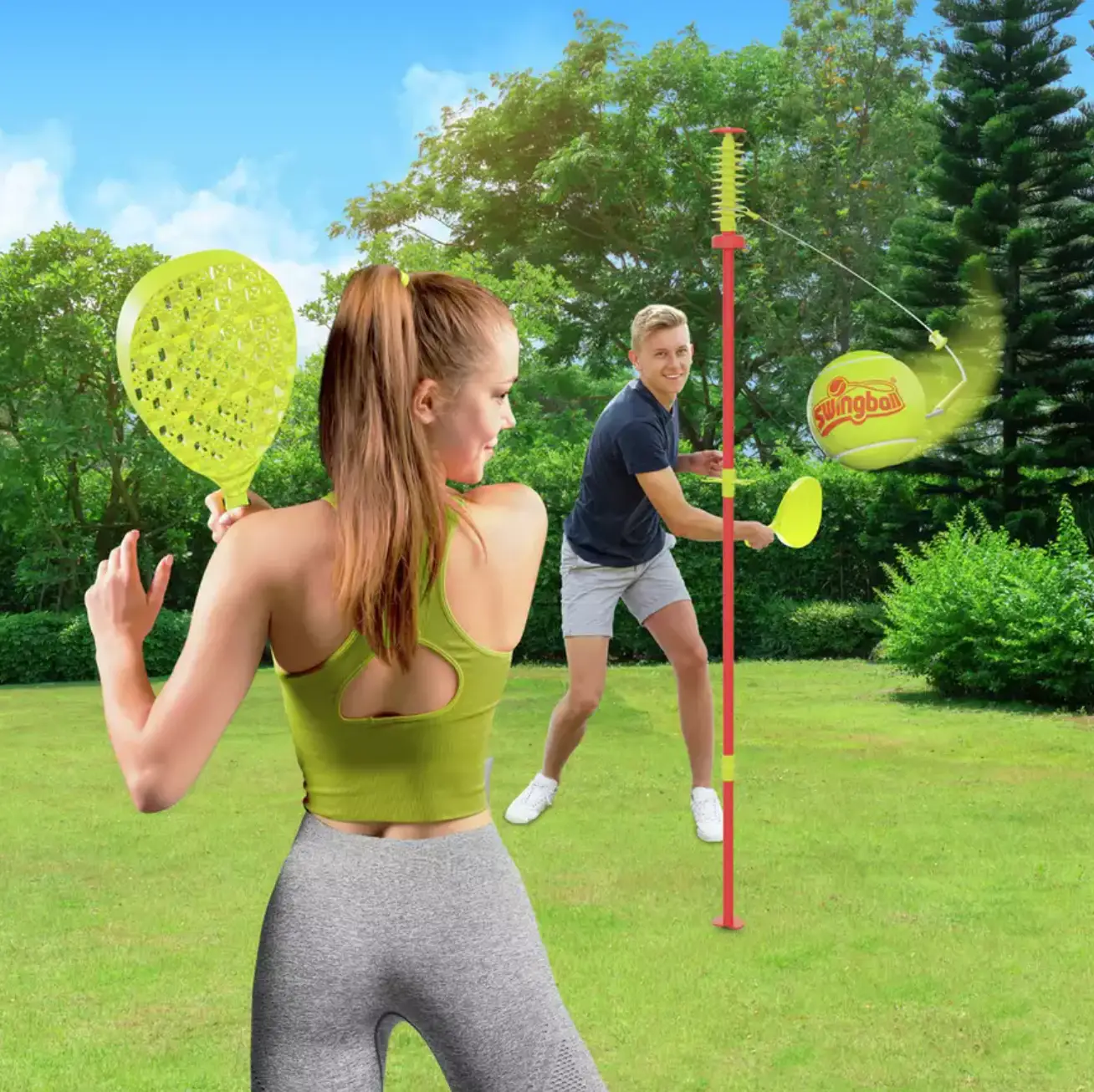 Forget losing balls over fences; this tethered tennis‑ball never strays, so even the most competitive match stays contained.
