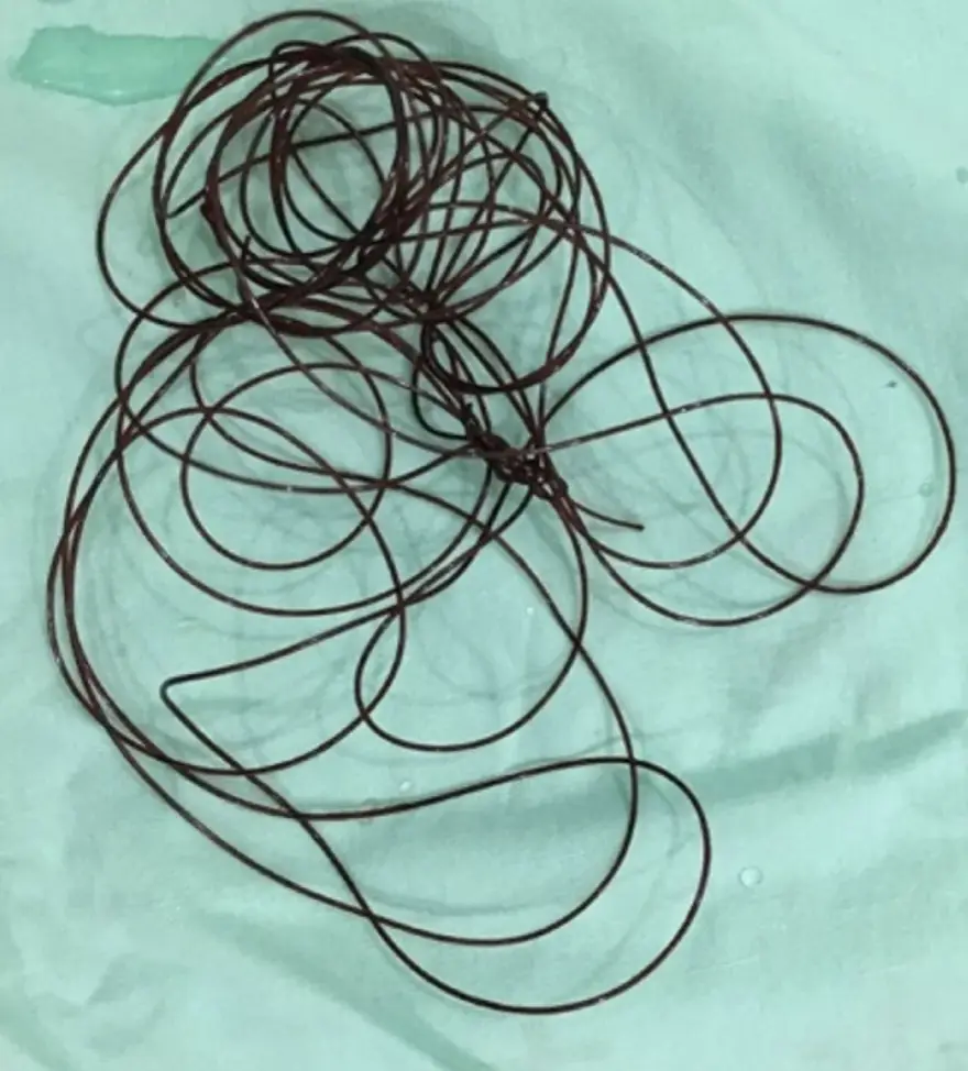 After an unsuccessful first attempt to remove the string, doctors decided to insert a camera into the man's bladder. This showed a 'black bundle of string' which meant that medics were able to use forceps after giving him local anaesthetic.