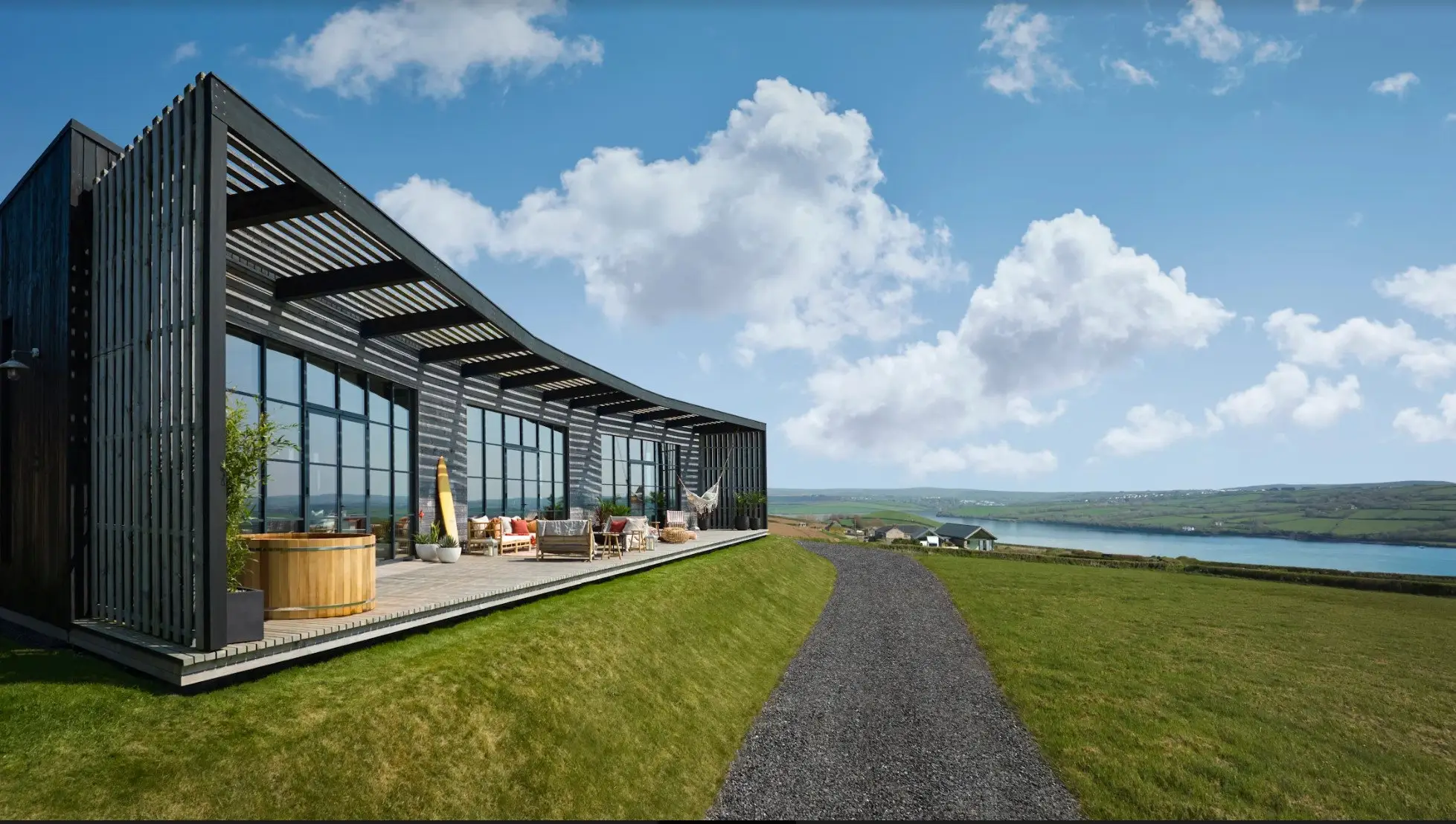 The eco-mansion is insulated with recycled newspaper and has a ‘green roof’ to help wildlife and reuse water. It also includes a suntrap terrace, hot tub and its own courtyard, as well as 5.3 acres of land. It even won an award for the best new build in Cornwall in 2020.