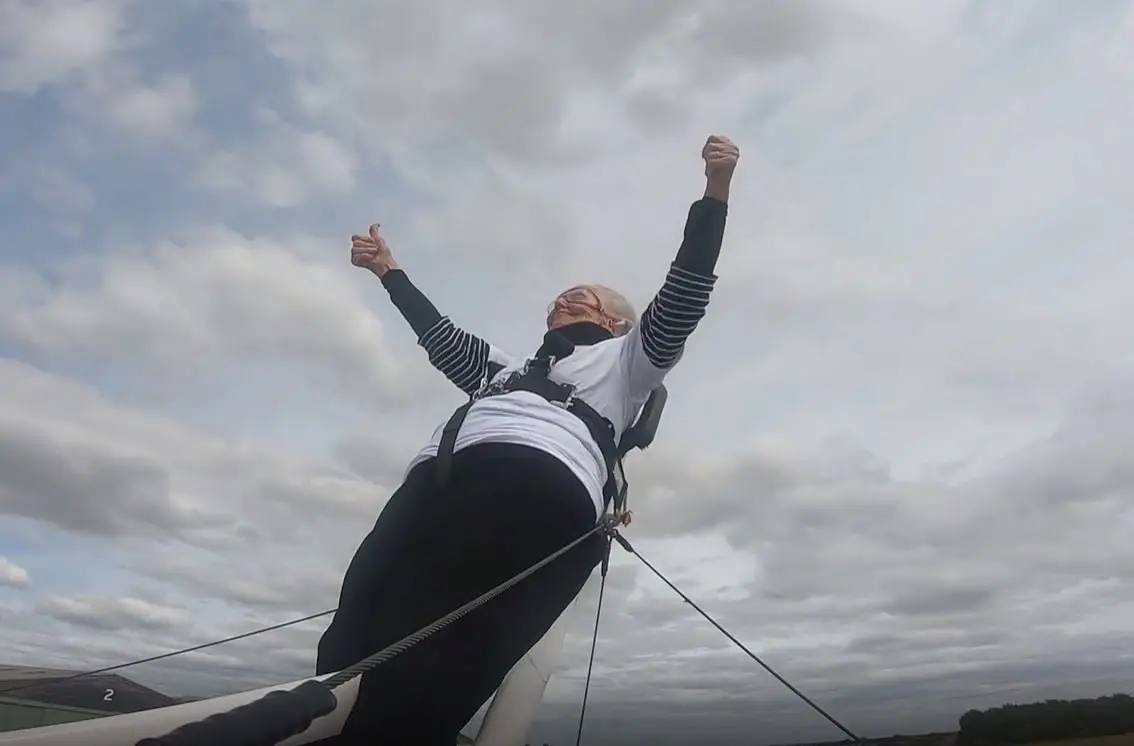 A thrill-seeking 93-year-old grandma has taken to the skies in a death-defying ride.