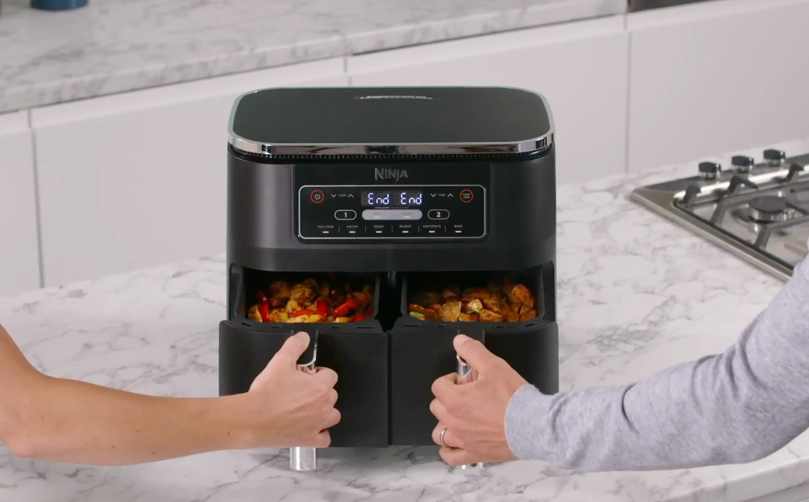 The Ninja Air Fryer comes with two non-stick dishwasher-safe drawers and crisper plates. A recipe book will also be included.