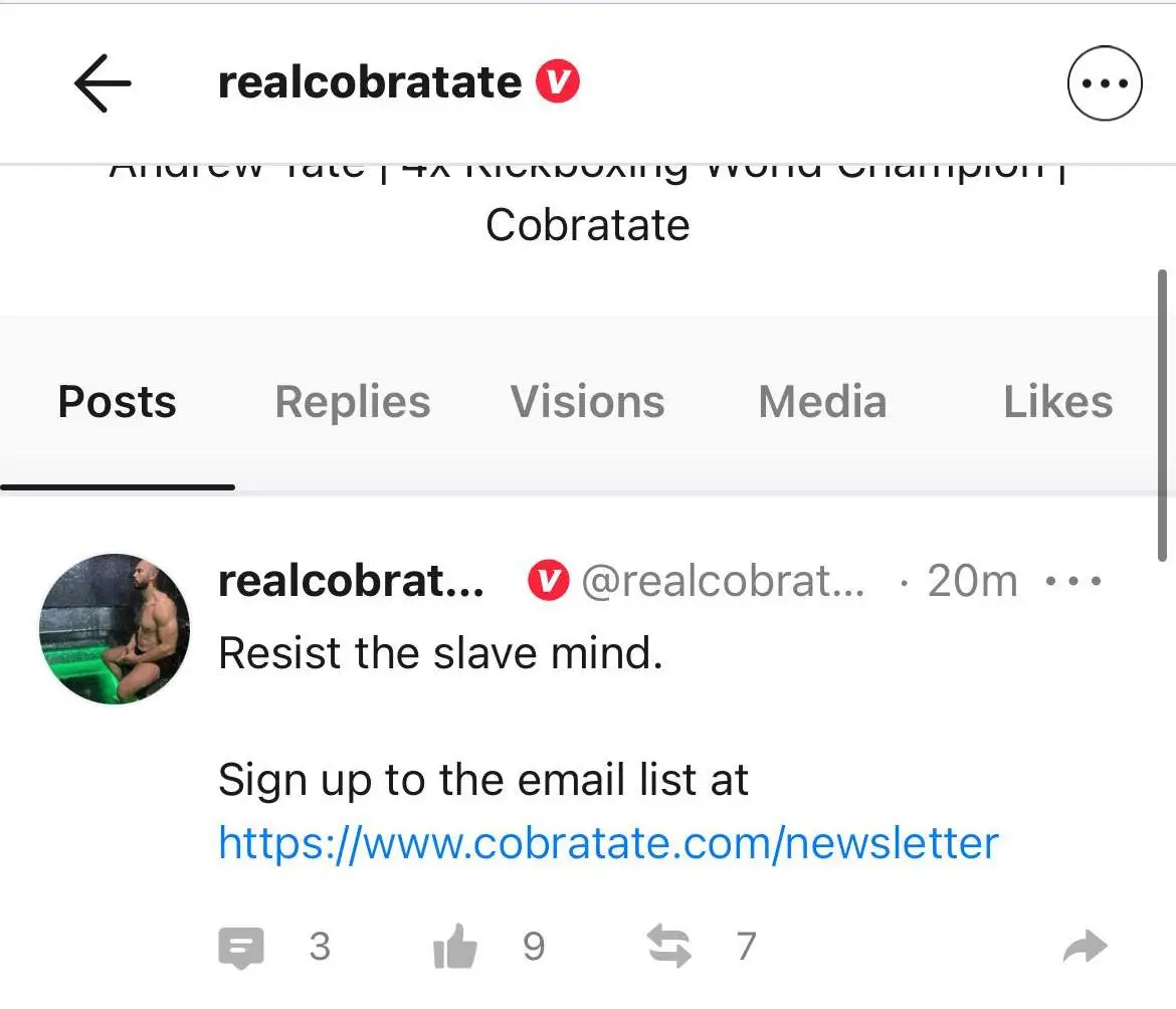 On the Gettr platform he wrote: "Resist the slave mind," alongside a link to 'sign up to the email list'.