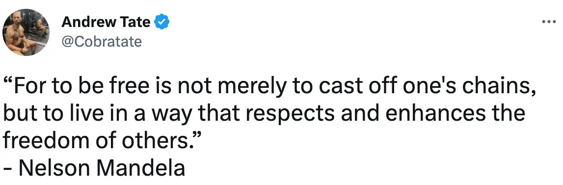 Andrew Tate has seemingly compared himself to the late anti-apartheid activist and politician Nelson Mandela.