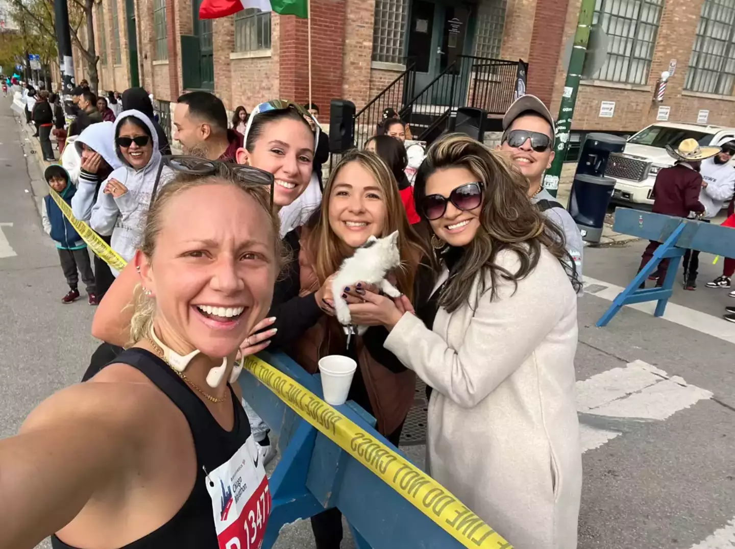 PEOPLE reported that 26 year old Boston resident Sarah Bohan, competing in the Chicago Marathon, had a slight curveball or fur ball - god, i’m good - thrown her way when she was distracted by an abandoned kitten on the sidewalk.