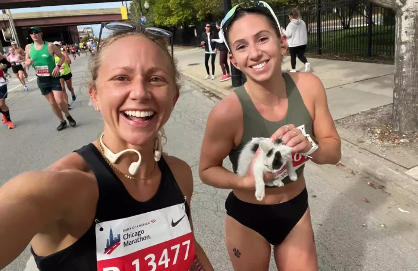 Thankfully, fellow runner Gia Nigro saw her pick up the kitten and joined the rescue mission.