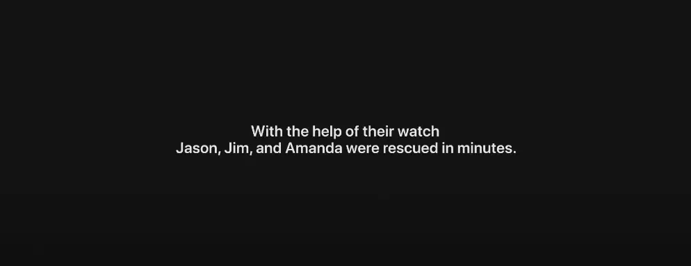 Text on the end of the advert reads: "With the help of their watch Jason, Jim, and Amanda were rescued in minutes."