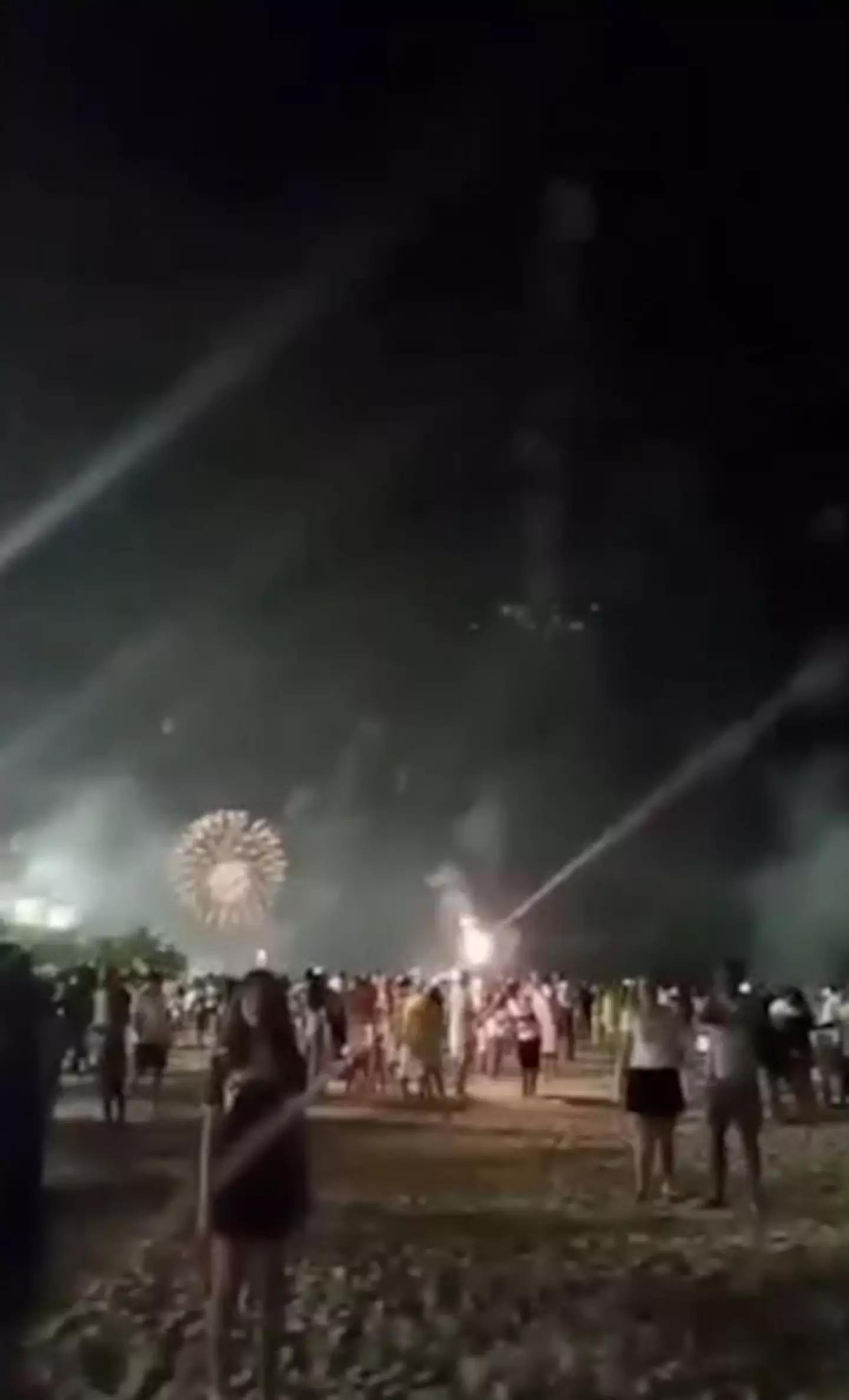 Elisangela Tinem was celebrating with her family on a beach in Praia Grande, Sao Paulo, when an alleged unauthorised firework display took place.
