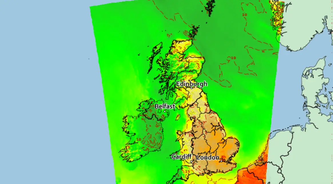Most of the country will be enjoying temperature higher than the average 16°C, though. The east of the country could enjoy highs of up to 26 °C, although it will feel fresher along the cost.
