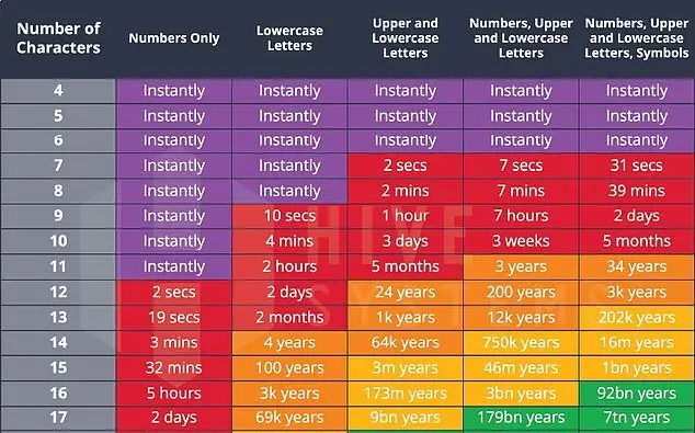 Eight characters in a password takes just 39 minutes to break through, but the more characters and complexity you keep adding the longer it takes for the hackers to crack it.