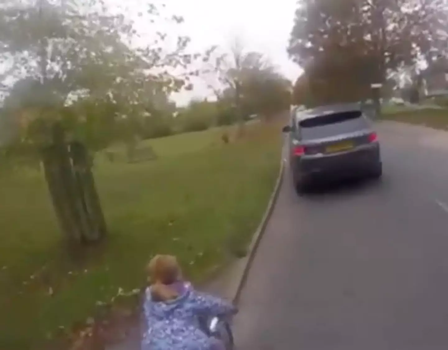 Shocking footage has been shared online showing the moment a Range Rover almost hit a young cyclist. Watch below: