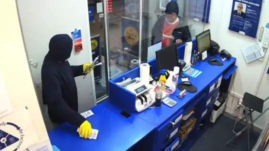 The footage showed a pair of men entering a pawnbrokers, where one shouts at the shop clerk: “Get me the money, I want the money.”