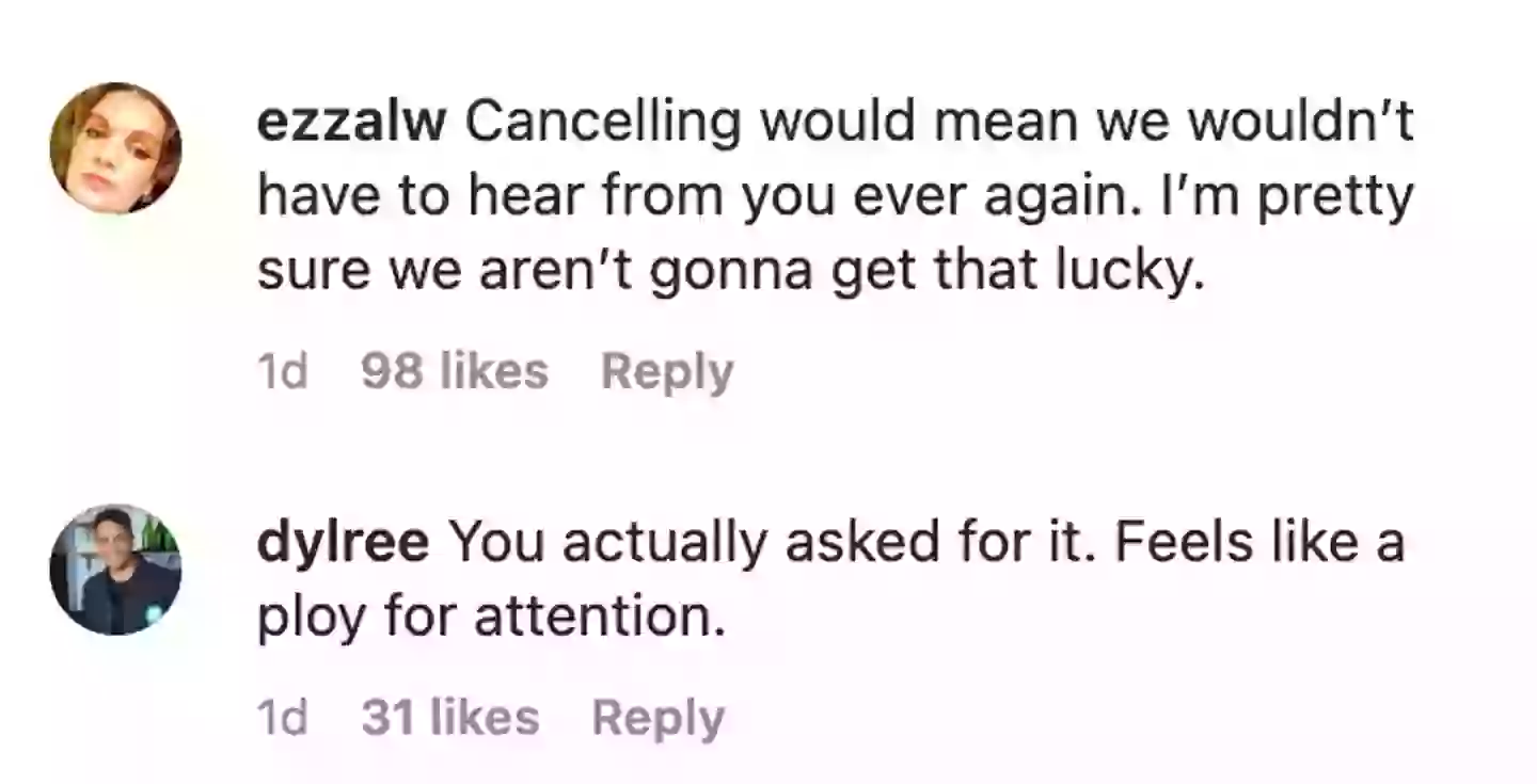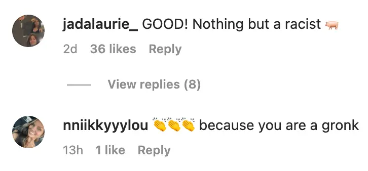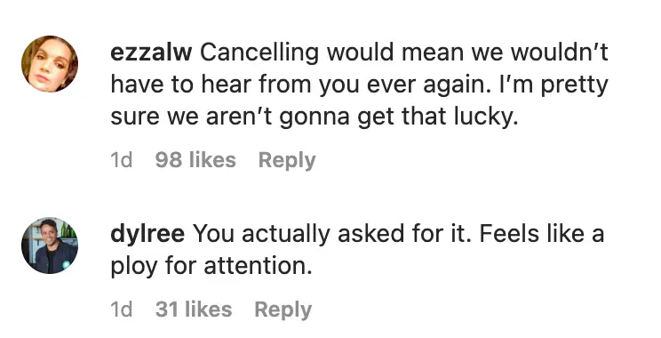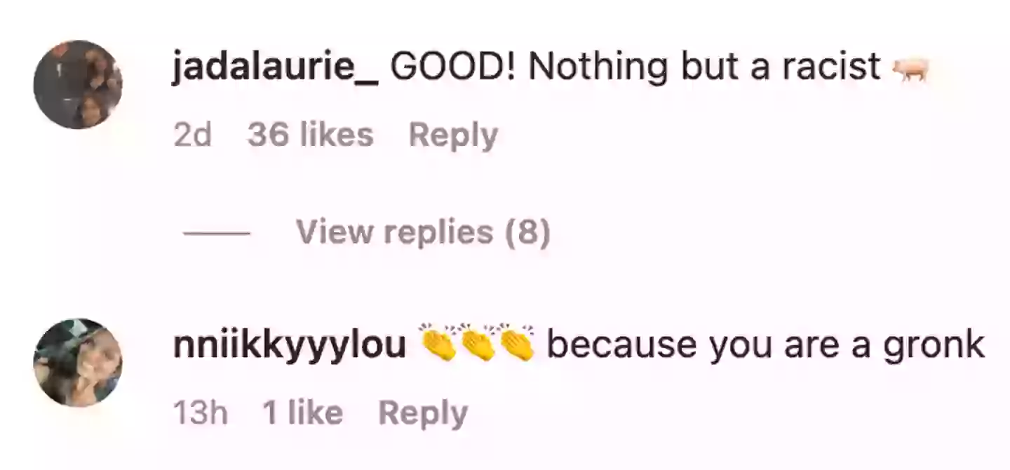 People absolutely lost it in the comments section, with one user saying: "You deserve to be cancelled. Racism has never been, nor will it ever be funny. Do better."