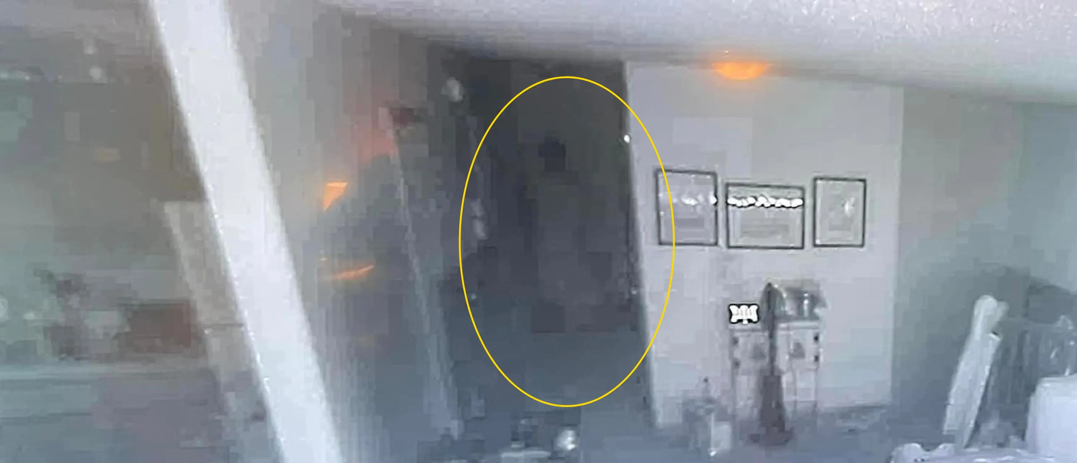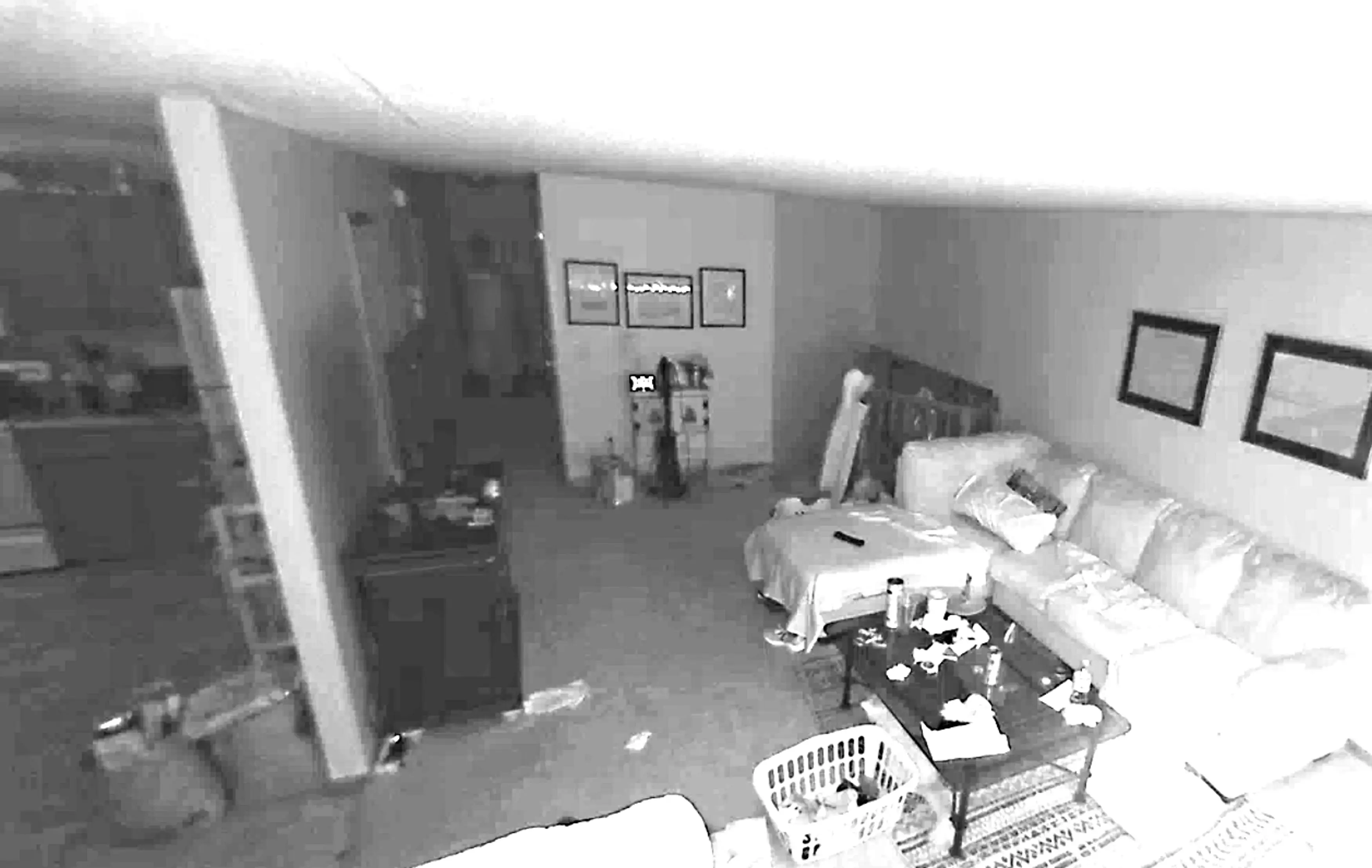 Footage caught on a camera the couple set up to keep an eye on their pets appears to show a figure moving around in the hallway.