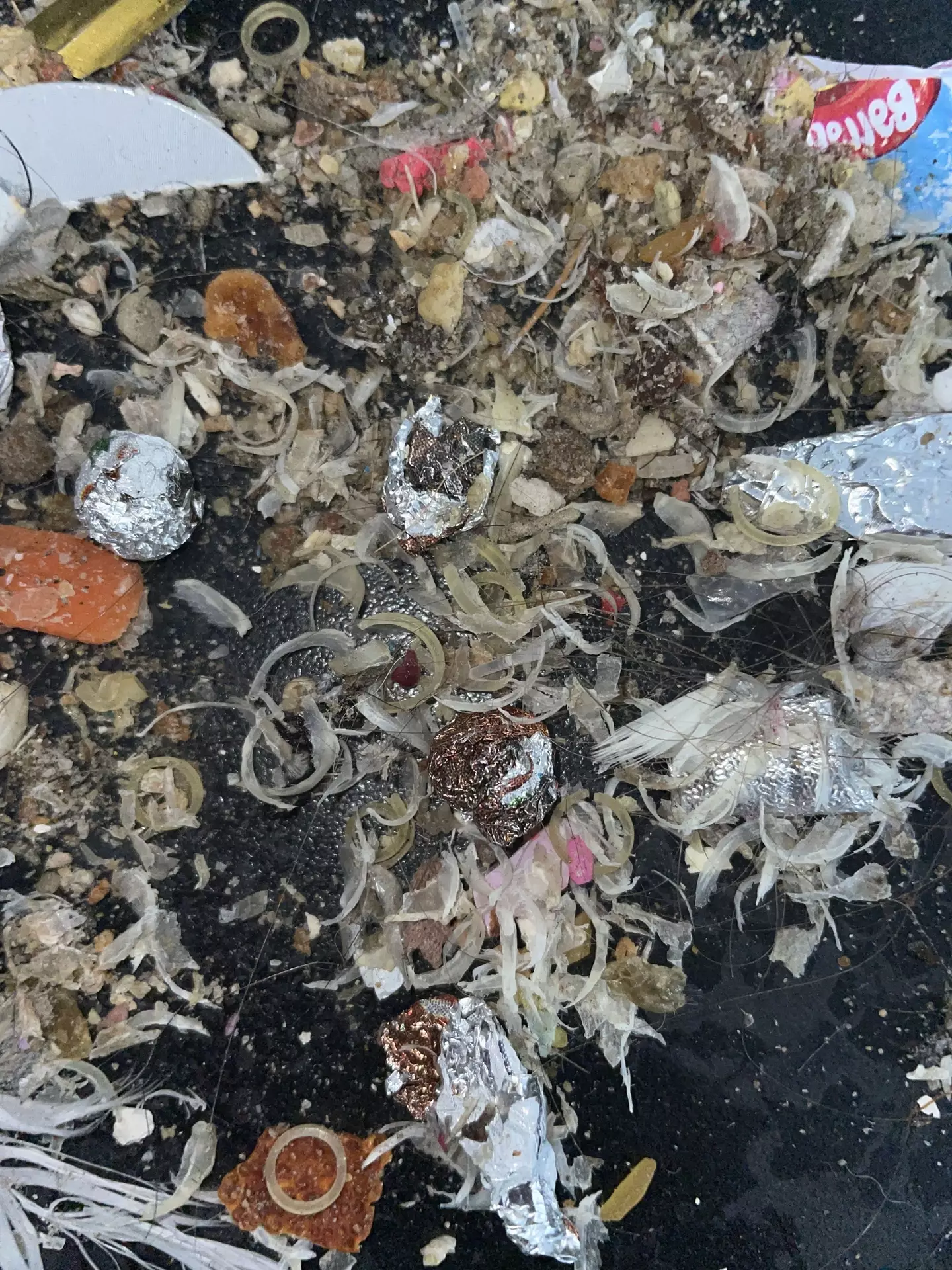 "He felt a load of yuck.. he pulled out said yuck and it was a handful of sweetie wrappers AND FINGER NAILS.