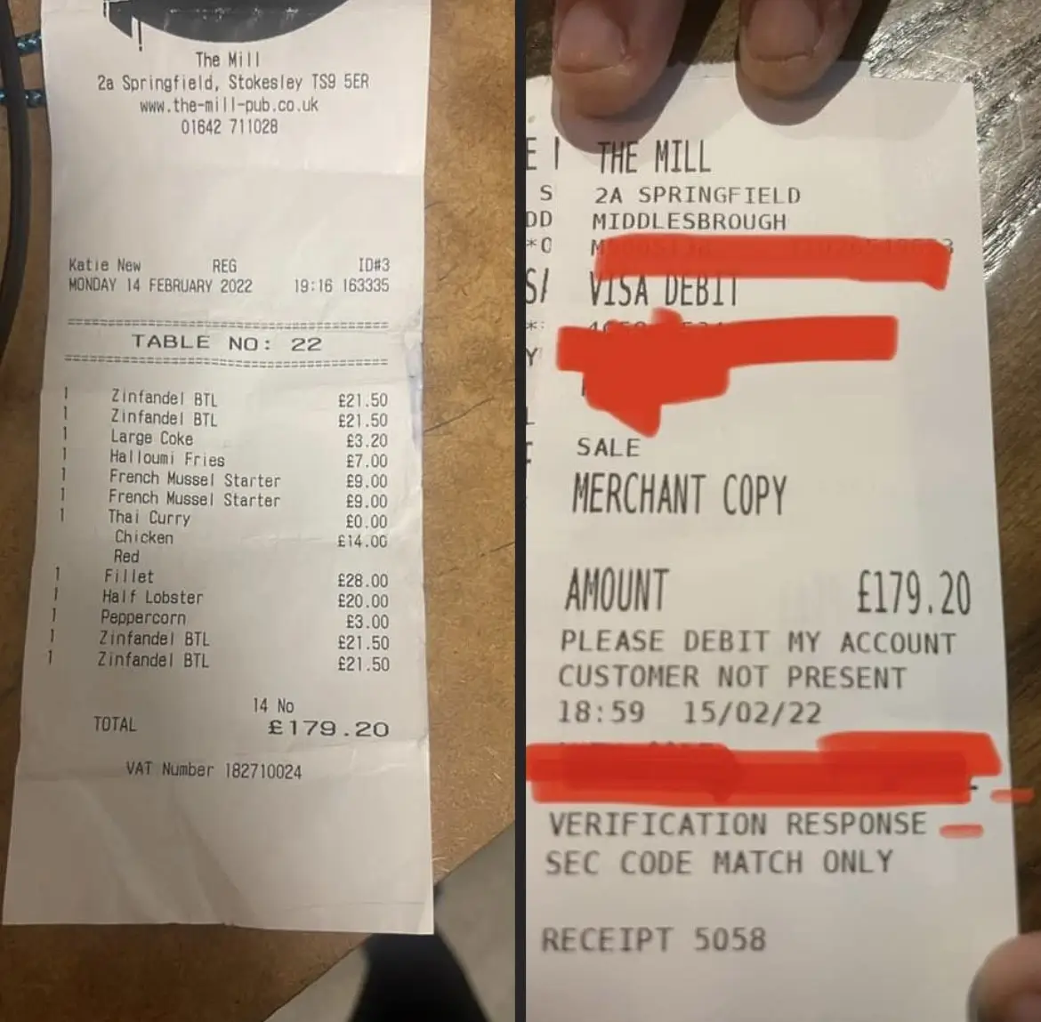 However, at 8pm on Tuesday night, The Mill announced that the £179.20 bill had been paid by an anonymous female. Case closed.