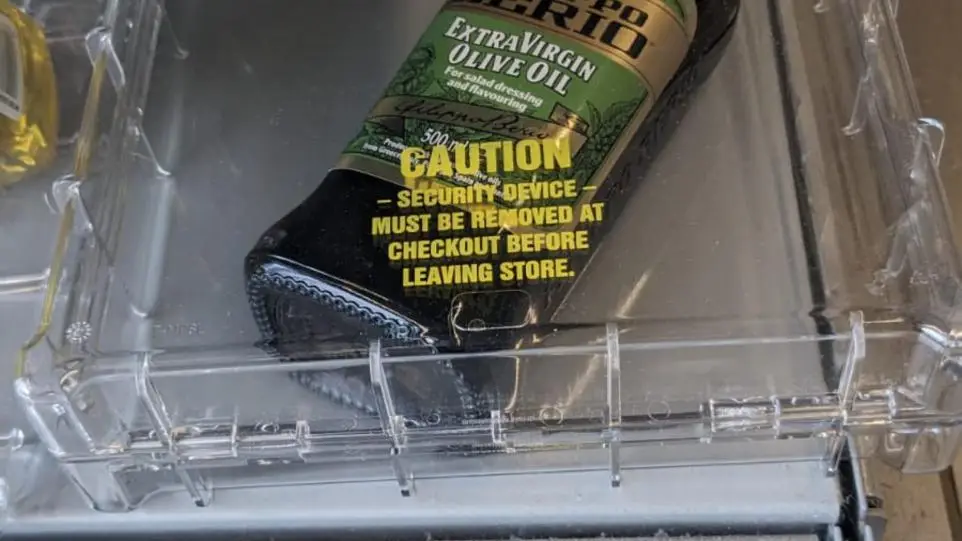 Bizarrely, shoppers at the Co-op on Sprowston Road in Norwich, Norfolk, can only get oil bottles once they notify a staff member, who then has to fetch a bottle from the security area.