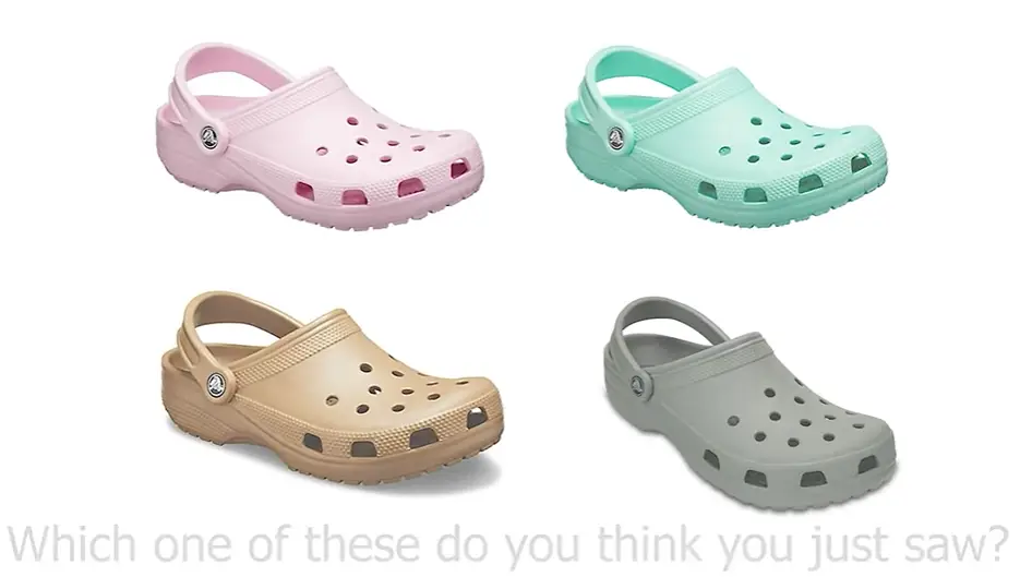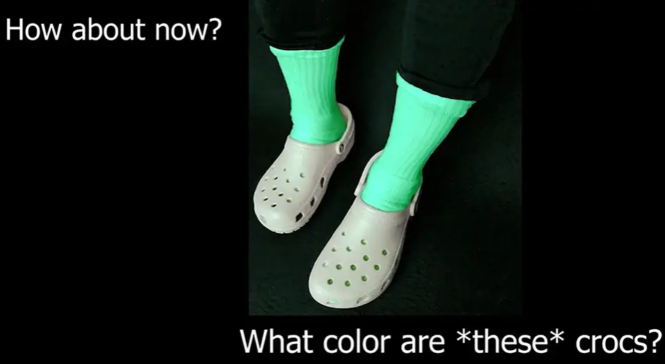 Wallisch and Karlovich continue: “Under normal lighting conditions, all people see the Crocs as pink. When put under green light, most people see the same Crocs as grey.