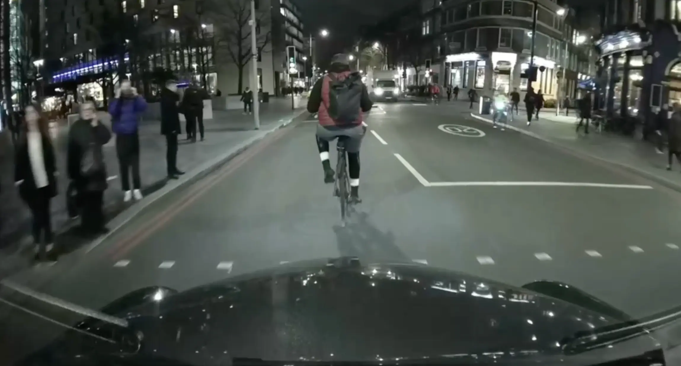 The video was recorded from a dashcam in central London and shows the cyclist in the middle of the road riding slowly and using his phone