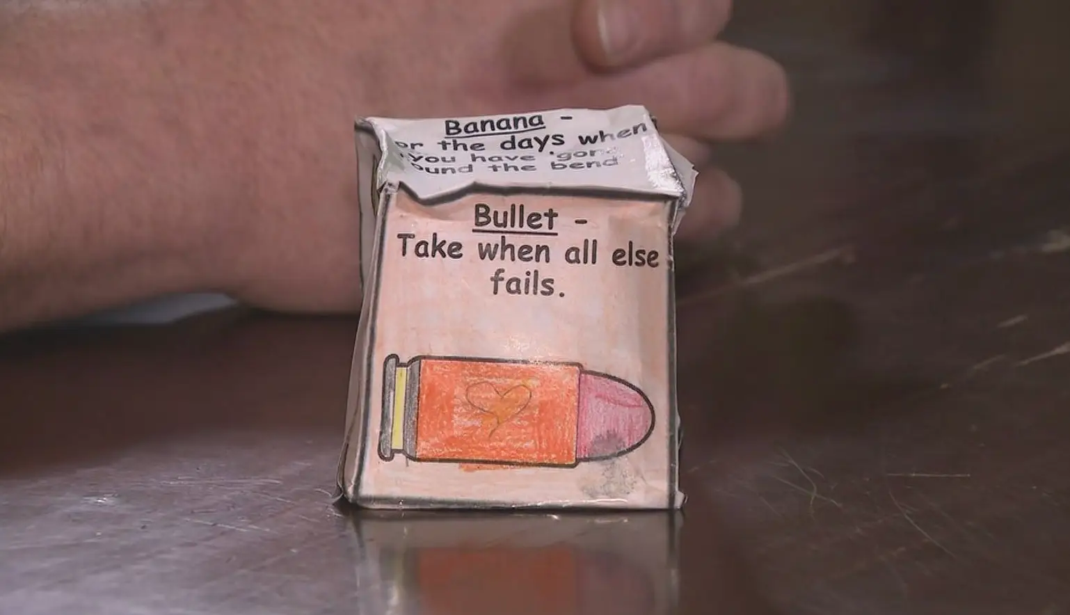 It had a picture of a bullet and an inscription that said: "Take when all else fails."
