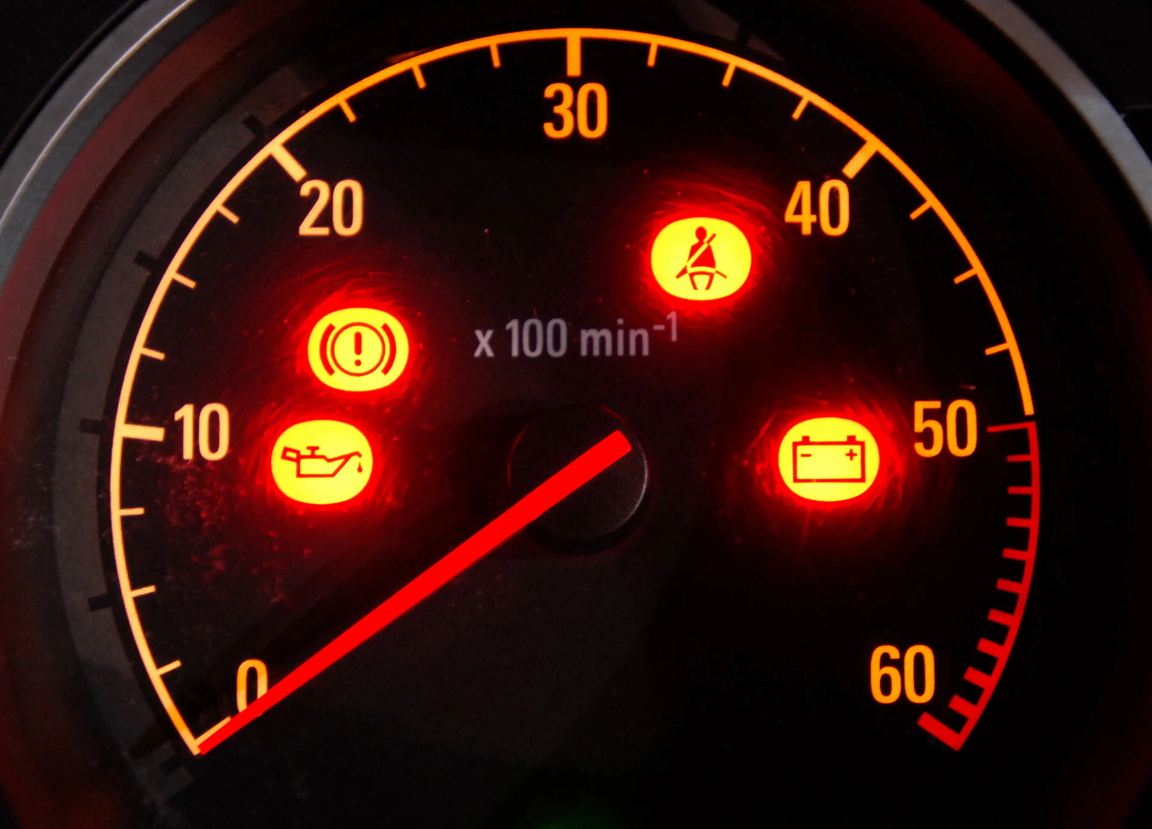 Among the symbols displayed include an oil warning sign, the bonnet not being closed, and a warning to check your coolant levels.