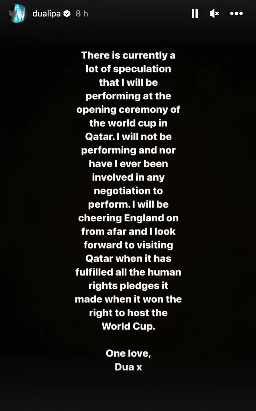 However, the 'Don't Start Now' artist has hit back and called out Qatar’s human rights record.