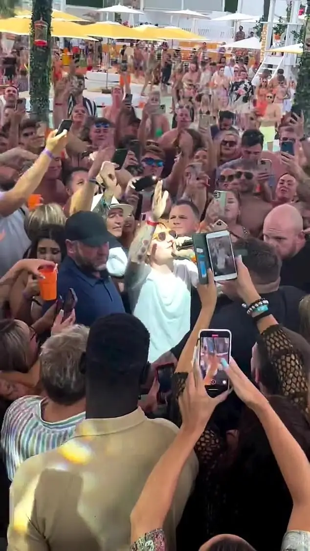 Imagine you're just sipping your bevvy at Wayne Lineker's O Beach Ibiza and, all of a sudden, one of the biggest music stars in the world casually turns up for a sing along.