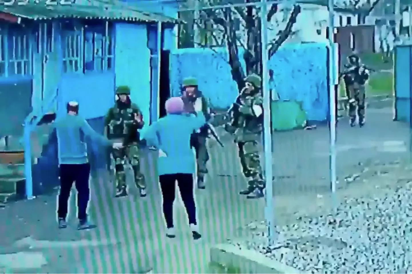 Incredibly, despite the addition of a fourth soldier, the troops seem to give up and opt to leave the property, believed to be located in Mykolayiv Oblast, about 80 miles east of Odessa in southern Ukraine.