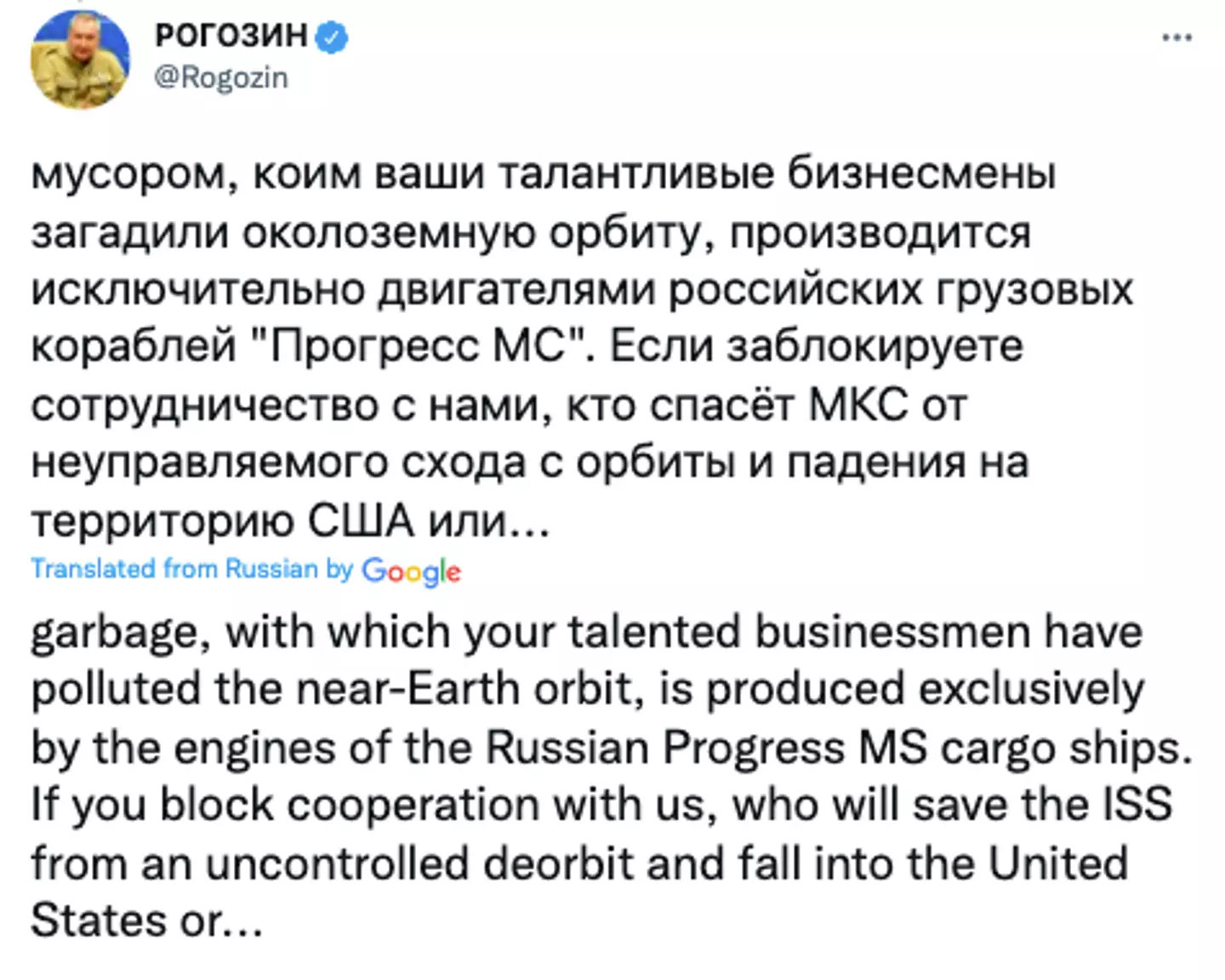 Russian space agency chief Dmitry Rogozin posted a rant on Twitter amid the Russian invasion of Ukraine.
