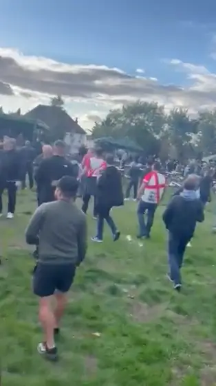An eyewitness told Evening Standard: "We initially saw a group of people running through the car park in all black, with scarves and balaclavas covering their faces wearing England hats, before hearing shouting and [seeing England fans] running in all directions.