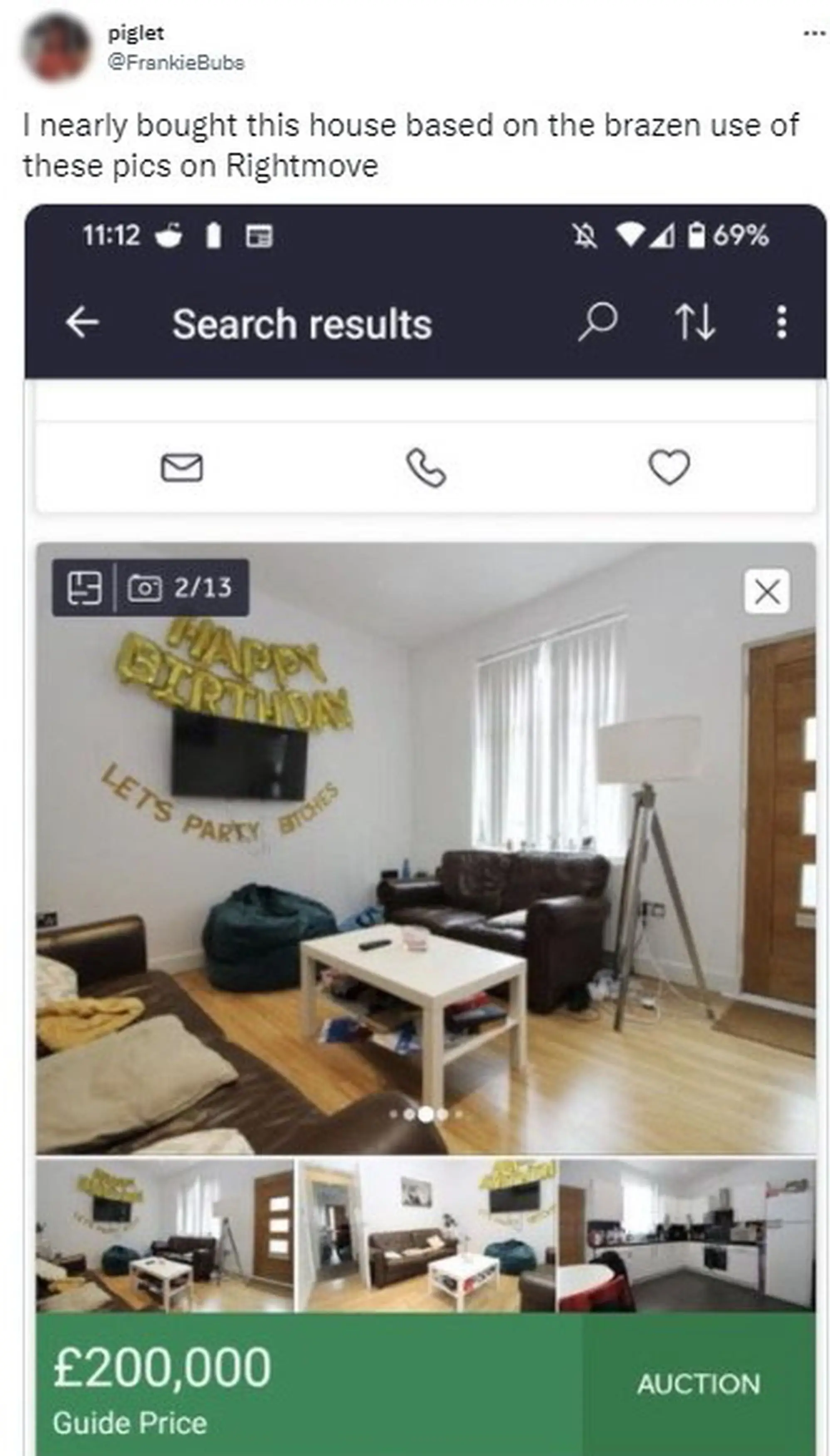 An estate agent has had to hastily pull the photos on an advert for a £200,000 listing after potential buyers spotted a cheeky banner in one of the shots.