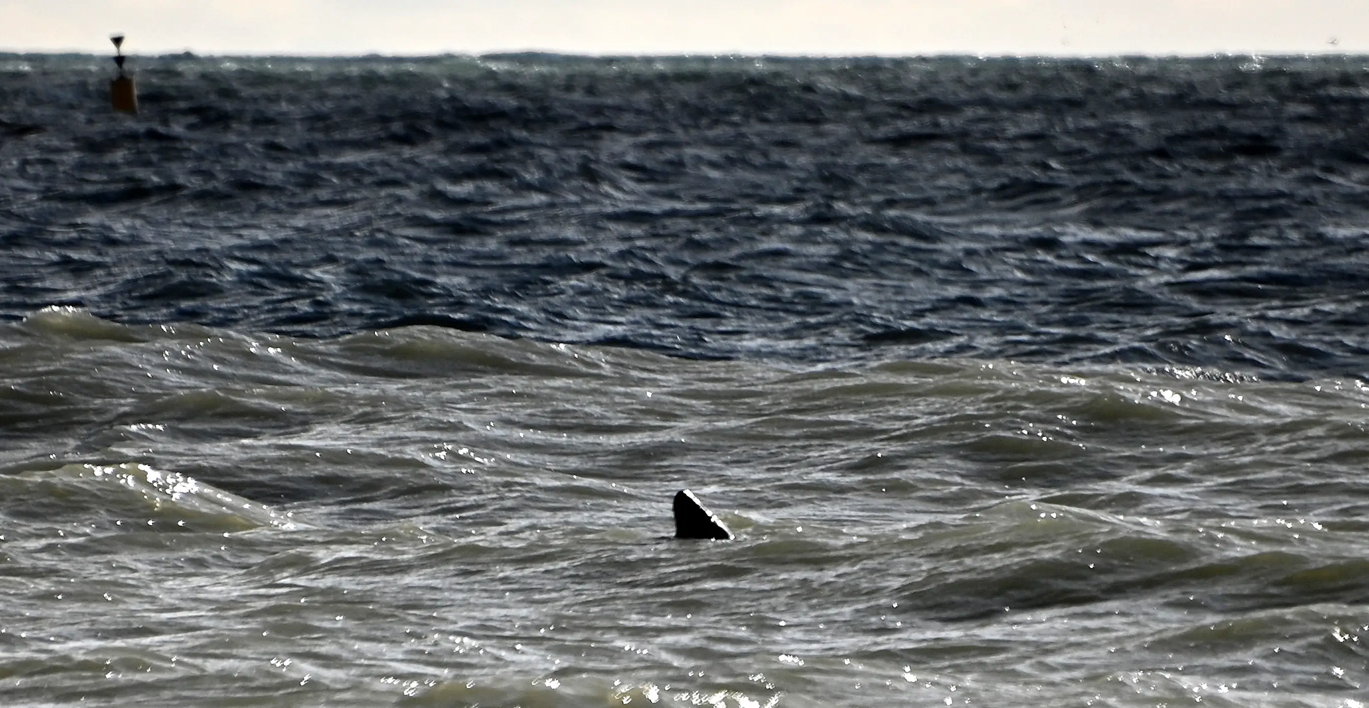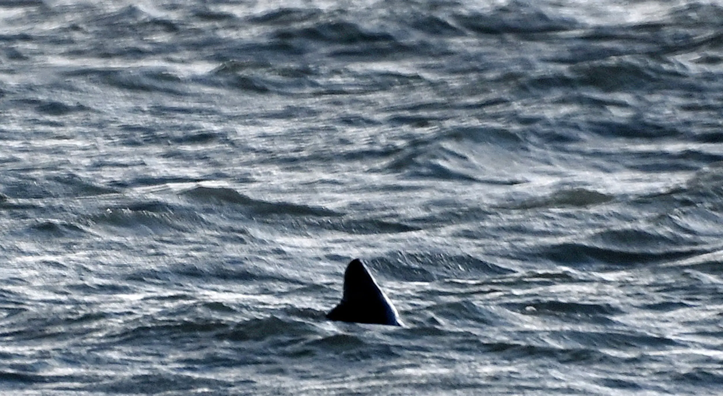 A fin believed to belong to a Great White shark has been spotted near a popular British beach, having been photographed by a local.