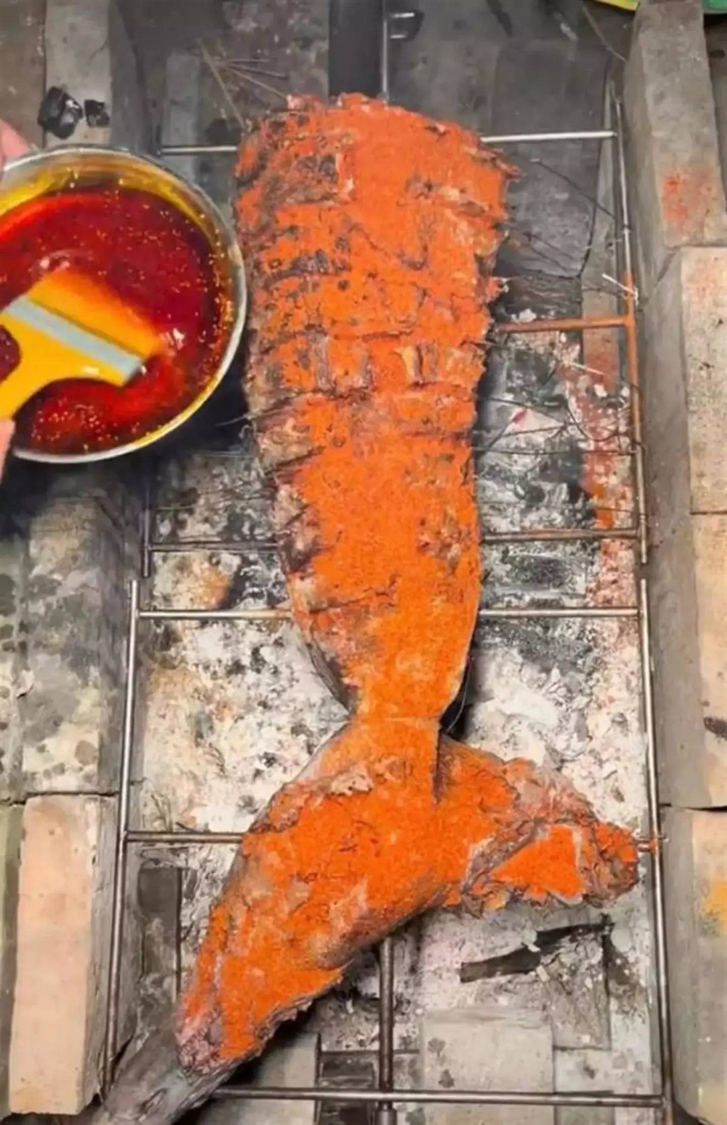 Tizi goes on to cut the fish in half, before barbecuing its tail and boiling its head in a broth.