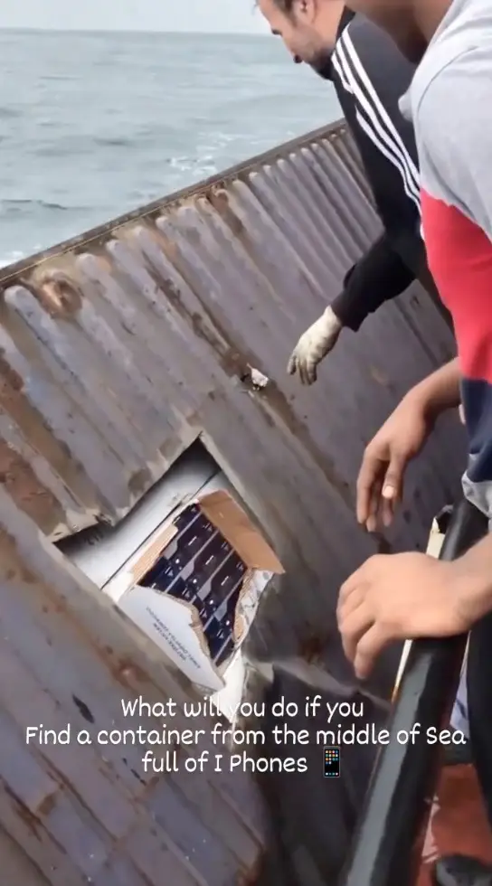 After tearing through the boxes, out fell - what crew members believed to be - thousands of new iPhones.