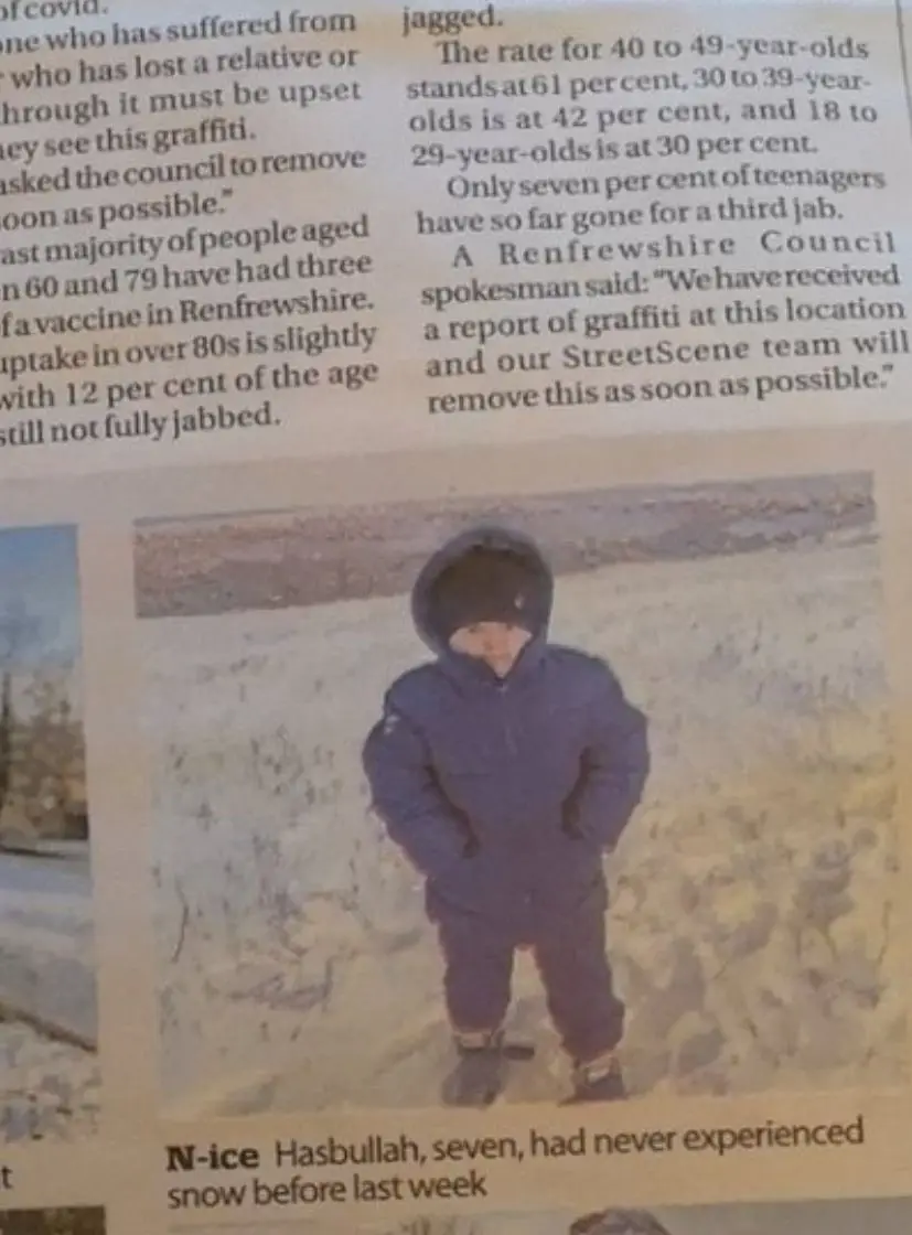 The caption under his pic read: "Hasbullah, seven, had never experienced snow before last week."