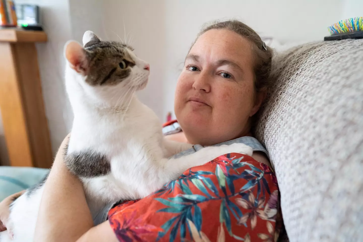 The 42-year-old spent three days in hospital before being discharged and was reunited with her beloved British Shorthair, who she now credits for saving her life.